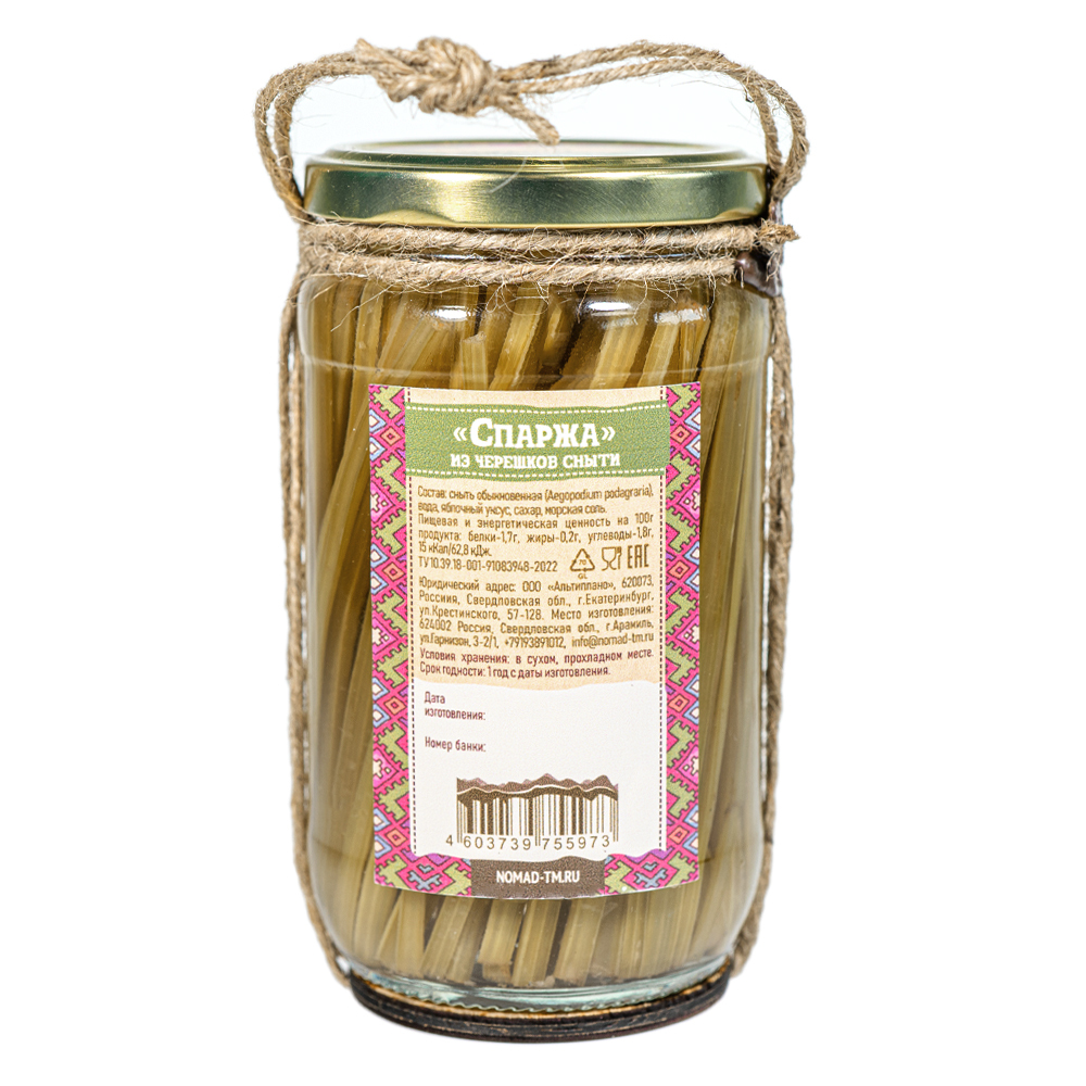 Описание: "СПАРЖА" из черешков СНЫТИ - это и добавка в салаты, и самостоятельная закуска, и оригинальное украшение Ваших блюд. Мы принципиально не используем искусственные ингредиенты, опираясь лишь на то лучшее, что даровано самой природой.