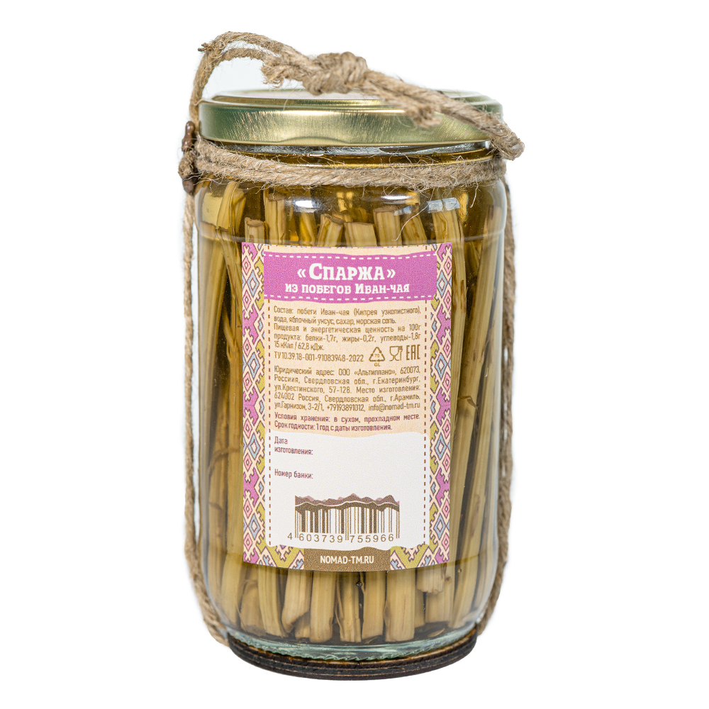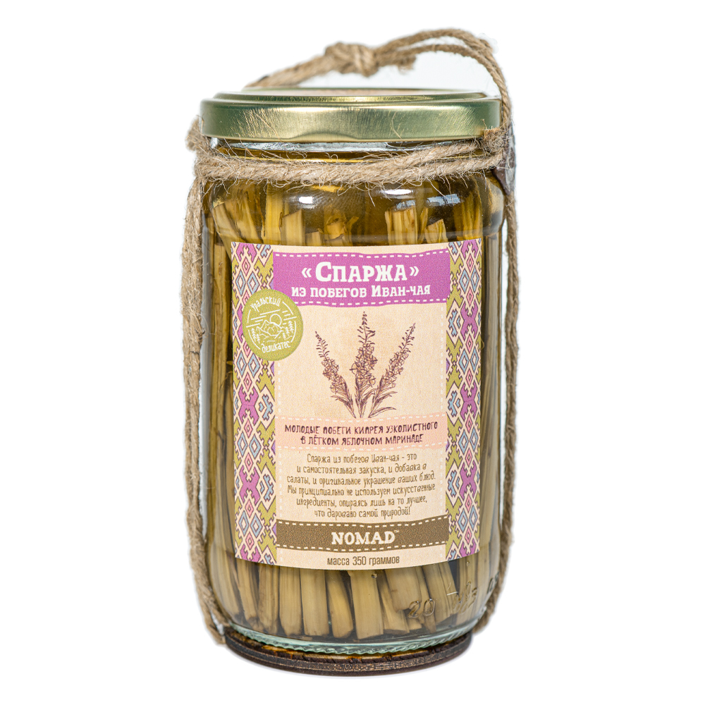 Описание: "Спаржа" из побегов Иван-чая - это и добавка в салаты, и самостоятельная закуска, и украшение Ваших блюд. Мы принципиально не используем искусственные ингредиенты, опираясь лишь на то лучшее, что даровано самой природой.