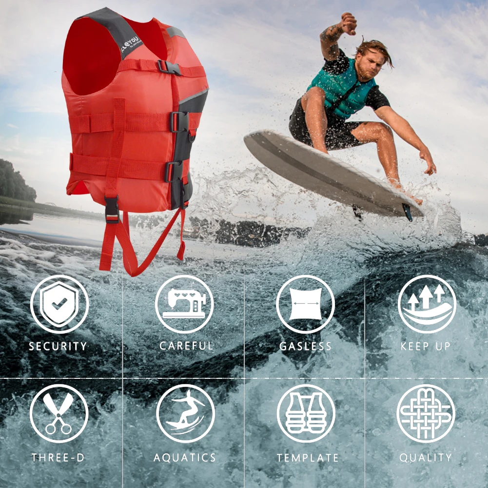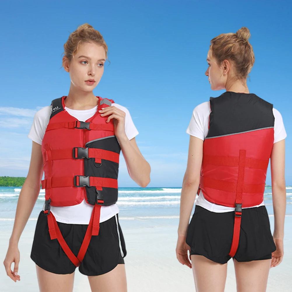 Оксфордский спасательный жилет для катания на лодках Портативный плавучий жилет Износостойкая Регулируемая пряжка со светоотражающей полосой для плавания Морская Рыбалка