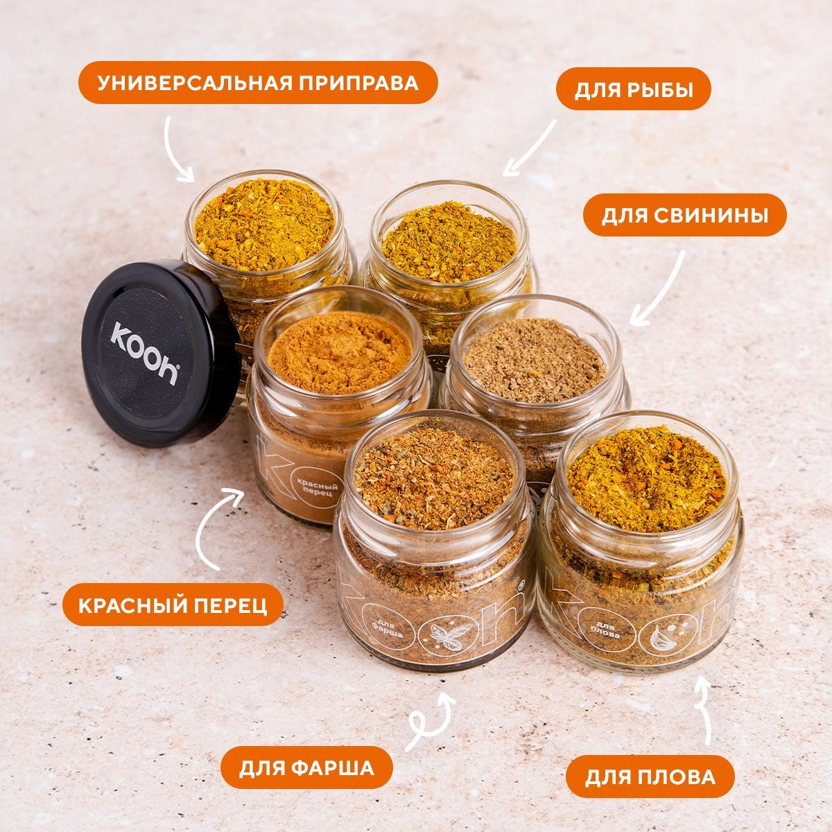 Специи и приправы Kooh из 12 видов: для курицы и рыбы, плова и картофеля, универсальные / Подарочный набор женщине и подарок мужчине