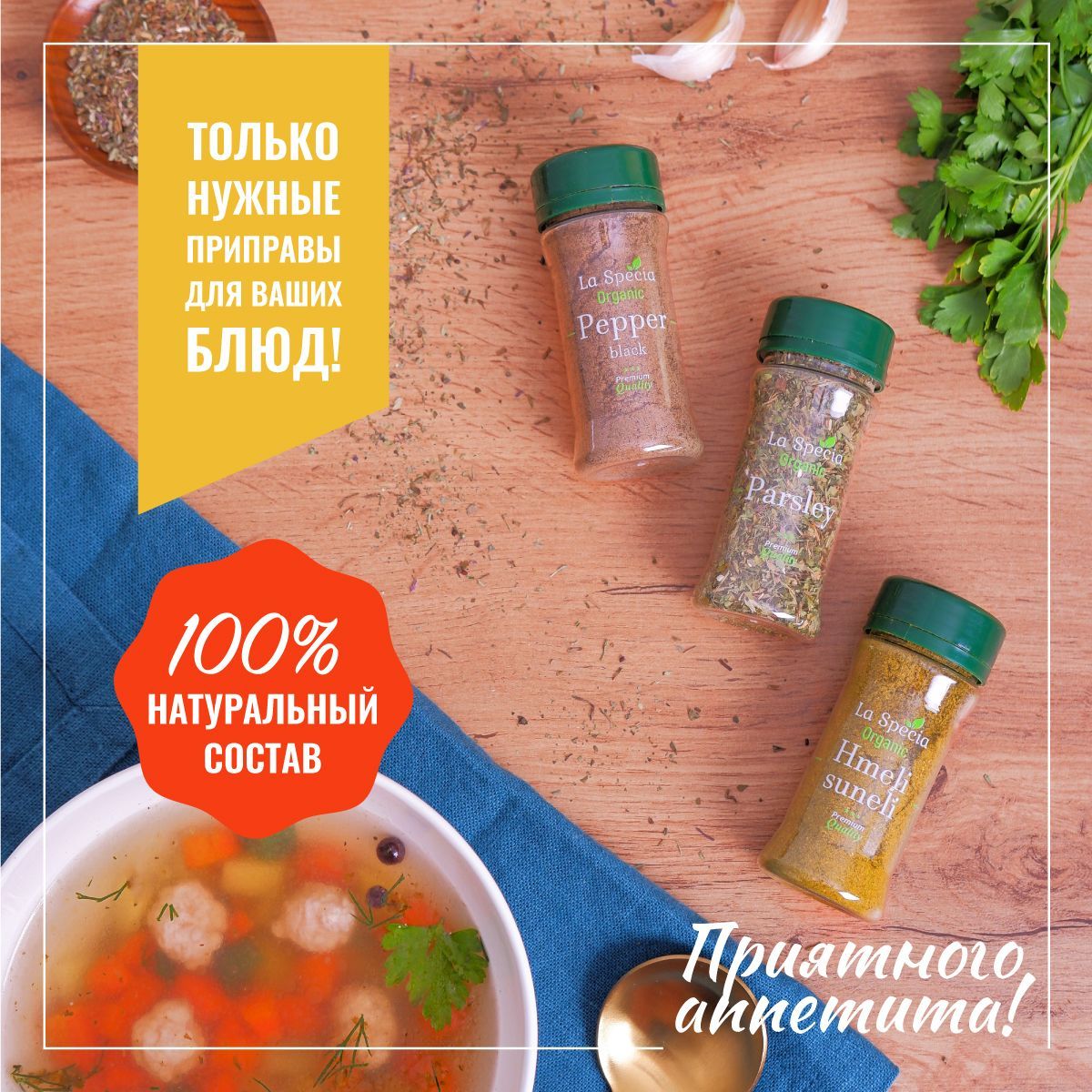 Особенность ароматных пряностей для мяса, курицы и овощей La Specia - в натуральном составе. В них отсутствует глутамат натрия и соль. Приправы бренда относится к продуктам премиум-качества.