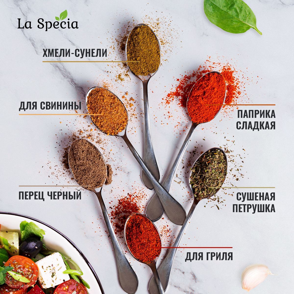 Наш набор специй является идеальным выбором для тех, кто любит готовить, но не имеет времени на посещение магазинов и подготовку. Если вы в поисках качественных специй, то наш набор специй - это идеальный выбор для вашей кухни. La Specia гарантирует высокий уровень качества и вкуса, который вы никогда не забудете.