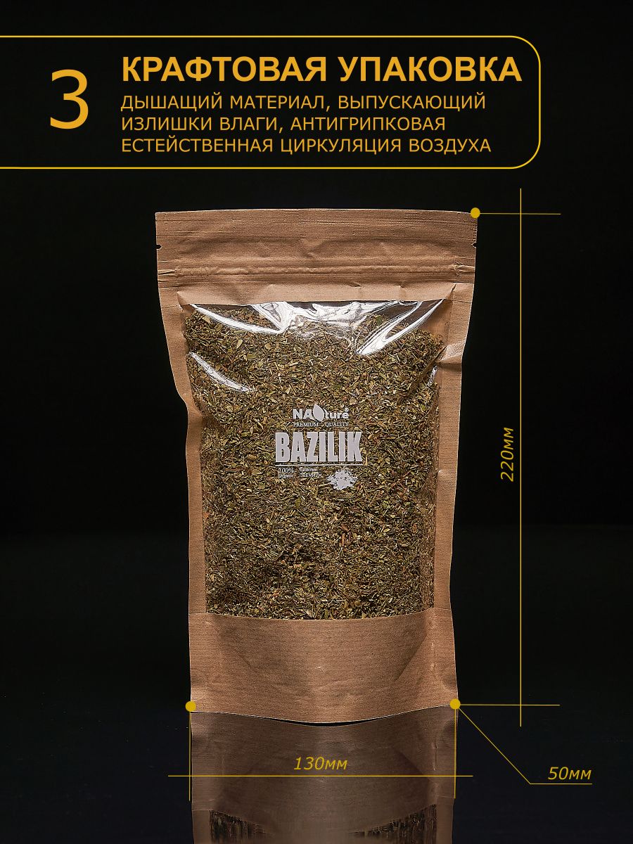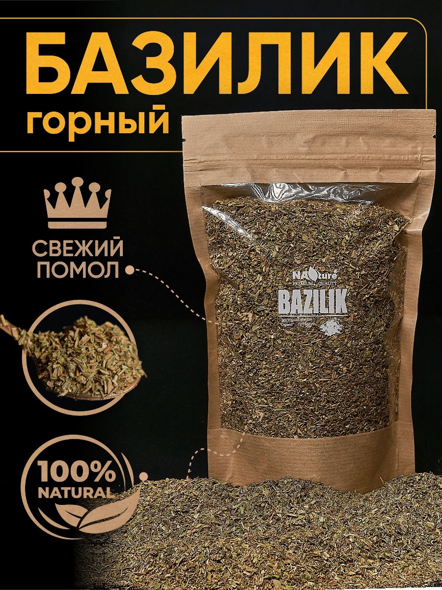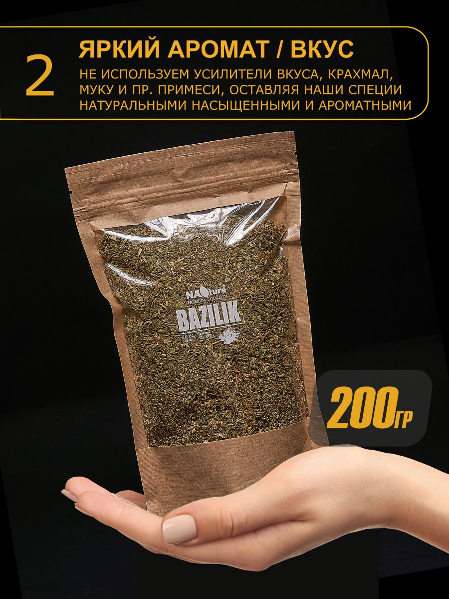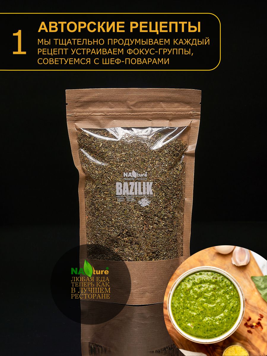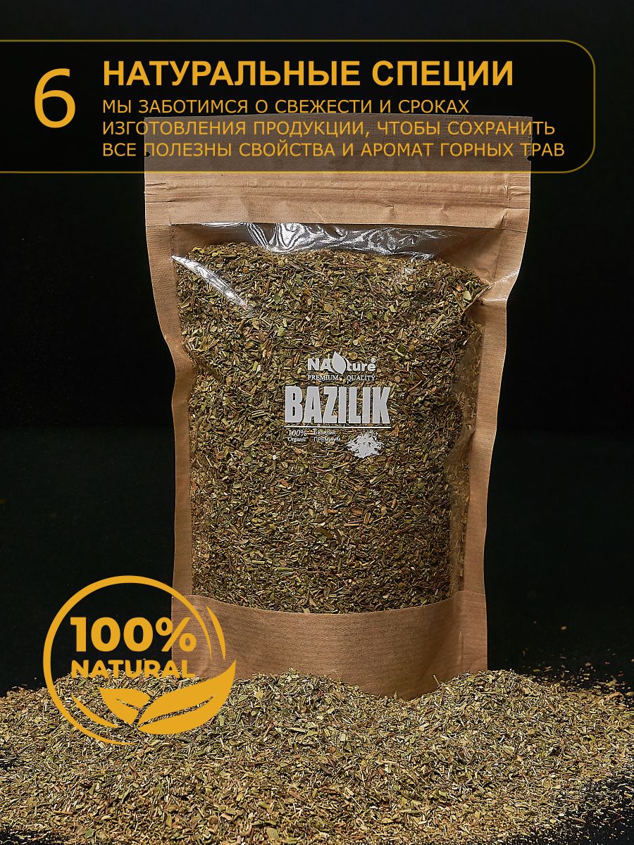 Описание: Приправа базилик имеет волшебный, ни на что не похожий вкус и аромат.Специя горный базилик идеально подходит к приготовленным на огне или свежим помидорам, а также к баклажанам, бобовым, огурцам и грибам. Одни и те же продукты с разным набором приправ может заиграть новыми красками.Сушеный базилик в качестве одного из важных ингредиентов входит во многие классические рецепты кулинарных шедевров ресторанного уровня.Эту пряность добавляют в паштеты и колбасы, и даже в несладкую выпечку.Для того, чтобы базилик красиво раскрылся в приготовленном блюде и превратил его в настоящий кулинарный шедевр, его нужно правильно добавлять в пищу. Это нужно делать за несколько минут до снятия супа, мяса или овощей с огня..Каждая наша специя тщательно упакована специально для Вас.Яркий аромат/вкус. Не используем усилители вкуса, муку, крахмал, и пр. примеси, все специи перемалываются перед фасовкой. НАТУРАЛЬНЫЕ СПЕЦИИ.Спешим сообщить Вам, что из-за свежести сырья и большого содержания эфирных масел, в специях могут образоваться комки в этом нет ничего страшного- просто разотрите пальцем. С любовью от NAture.