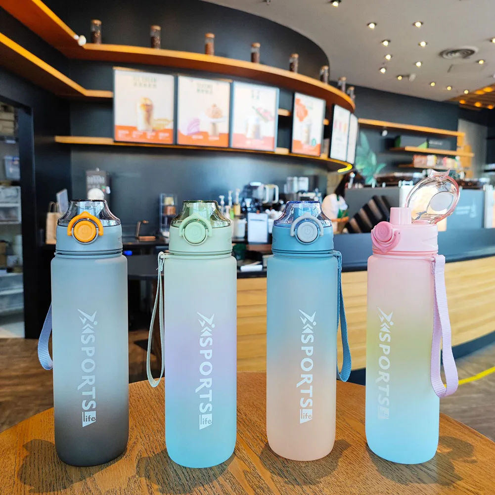 Спортивная бутылка для воды 1000 мл, велосипедная бутылка для воды градиентного цвета, герметичная, прочная, большой емкости, прыгающая крышка, портативная, для путешествий