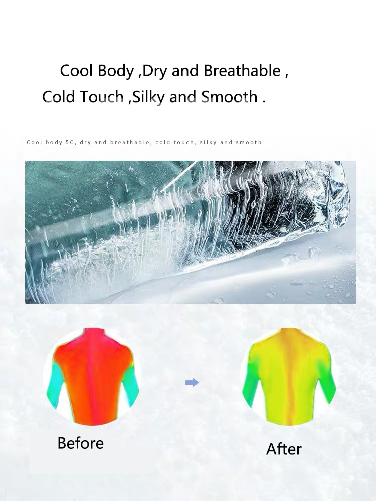 После ношения Тепловая температура значительно снизилась, а процесс обработки легкого молочного шелка и тонкой ткани снизил температуру тела. Быстрое распространение тепла тела, сухой и дышащий, прохладный на ощупь, гладкий и освежающий.