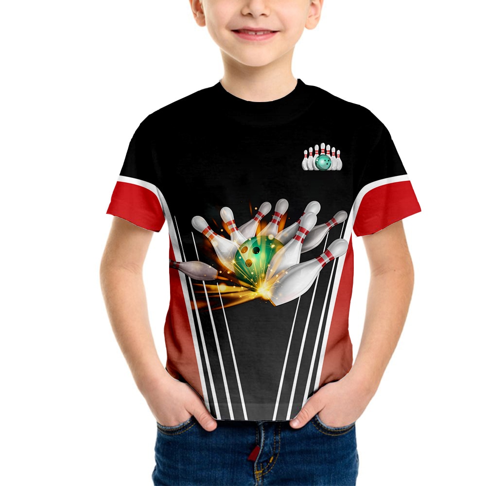 Спортивная футболка для мальчиков в стиле боулинга, топы с коротким рукавом, детская одежда для девочек, летняя футболка, футболка, одежда для детей ясельного возраста