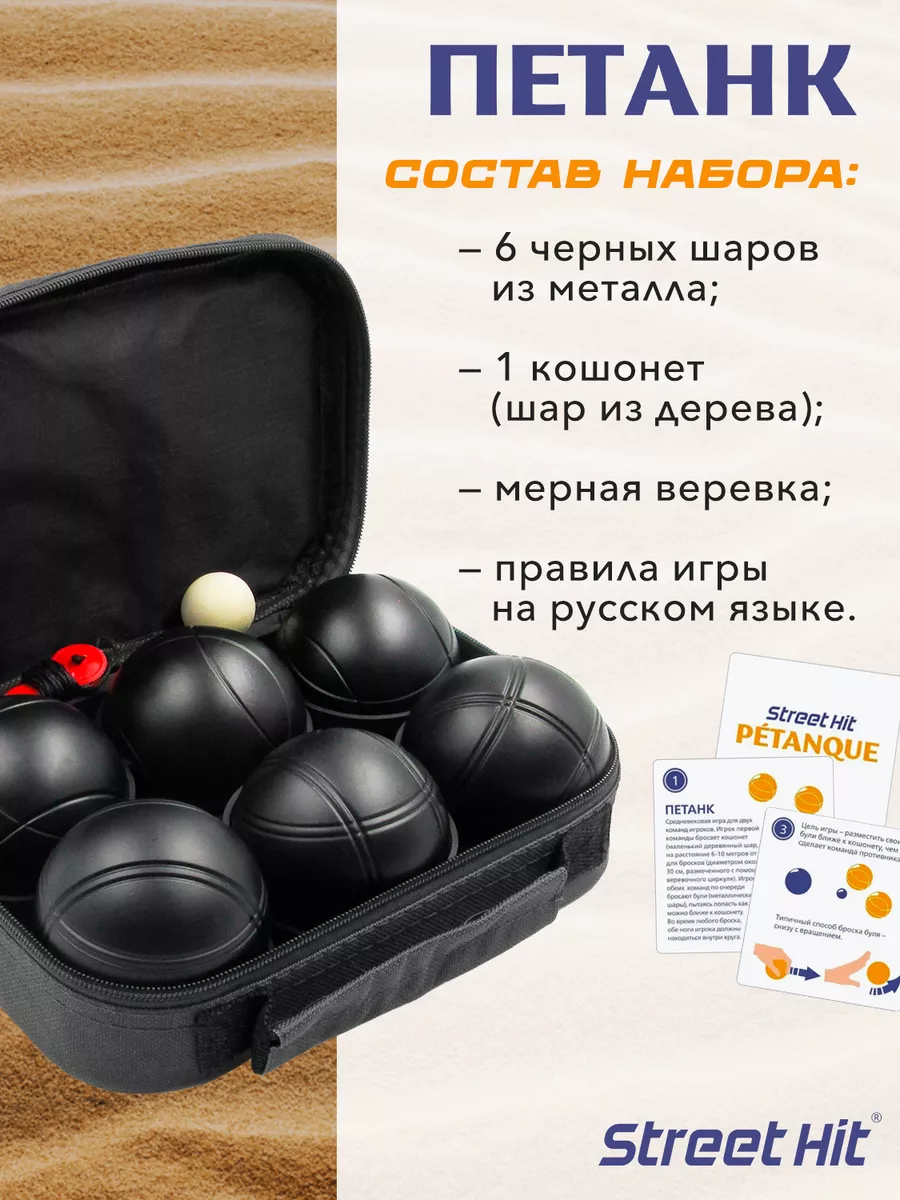Спортивная игра Street Hit Петанк (Бочче), 6 шаров, черный