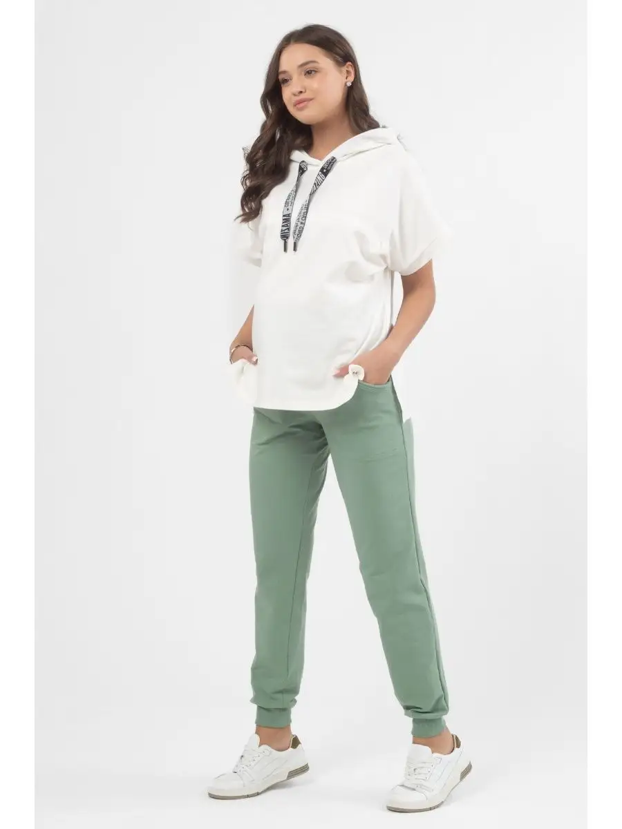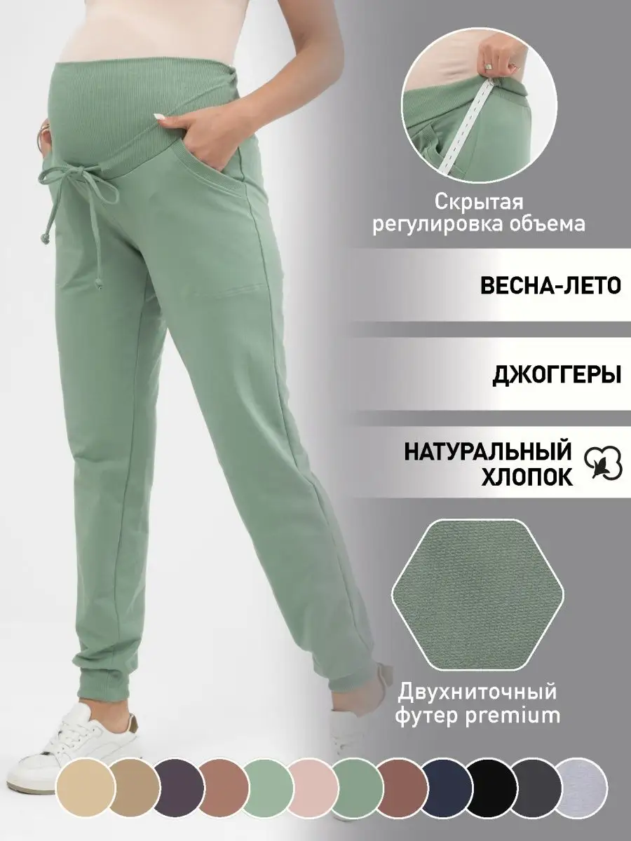 Описание: Модные спортивные брюки для беременных сшиты из премиального двухниточного футера. Ткань на основе хлопка дышит, имеет деликатную фактуру и не раздражает кожу. Штаны с высокой посадкой дополнены эластичным поясом, который мягко поддерживает растущий животик. Объем пояса меняется за счет скрытой резинки на пуговице, поэтому модель подходит женщинам на любом сроке беременности. Широкие манжеты на штанинах позволяют регулировать длину изделия, подгоняя ее по росту. Джоггеры из хлопкового трикотажа идеально дополнят женский гардероб. Они подходят для повседневного ношения в летний период и демисезон, для занятий спортом и прогулок, а также для дома. Штаны можно комбинировать с футболками, майками, толстовками и джемперами. Линейка предлагает несколько стильных однотонных расцветок, а размерный ряд включает стандартные и большие размеры.