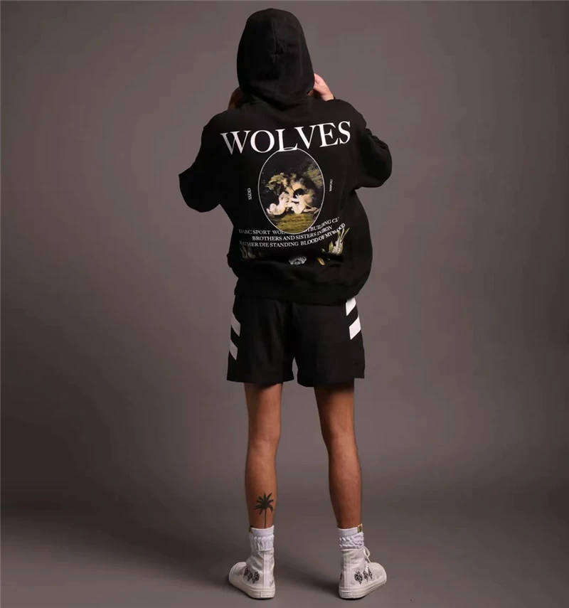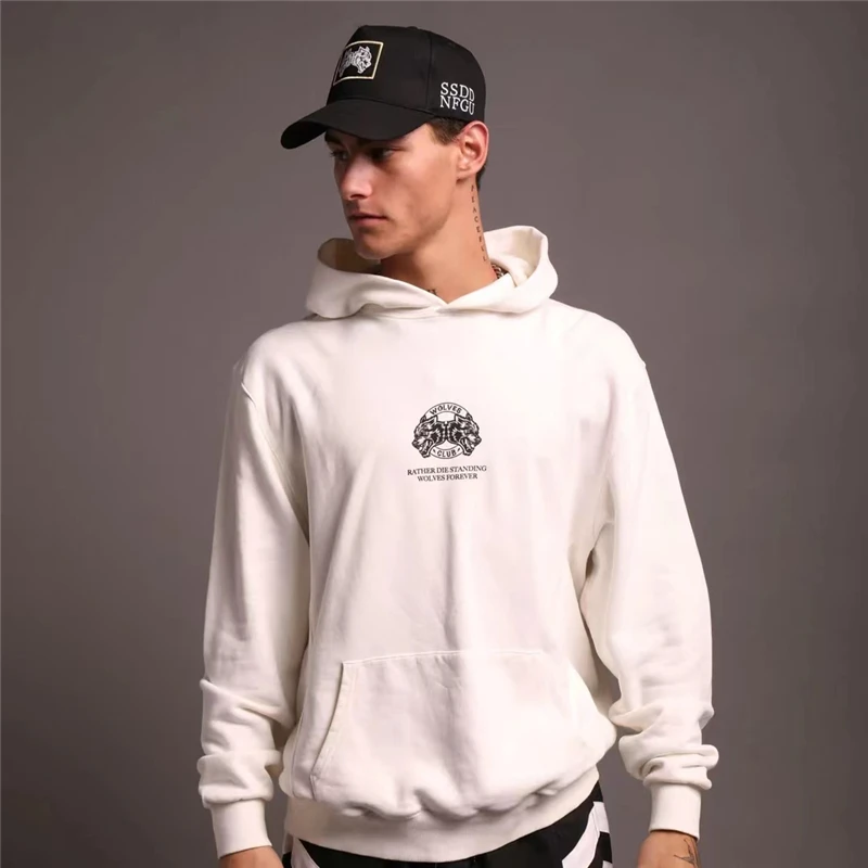 Спортивные толстовки DARC, Новинка осени 2022, теплые хлопковые флисовые толстовки 480 г, мужские свитшоты оверсайз с рукавами и принтом в виде волков и надписей, брендовая одежда