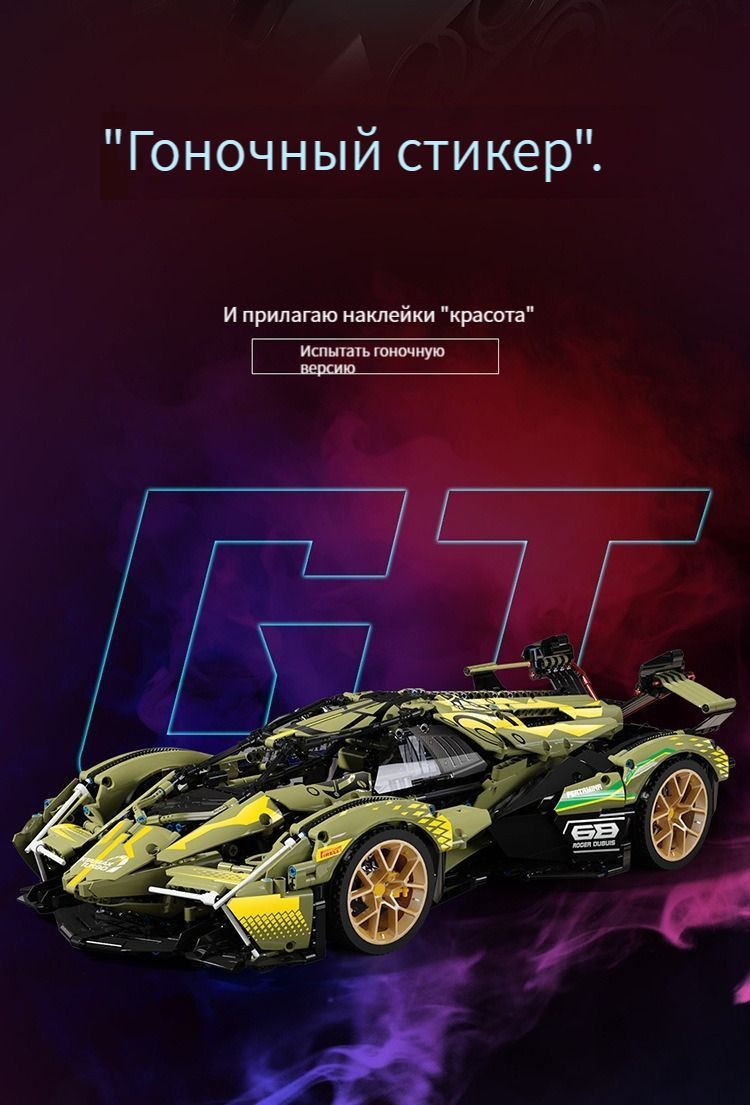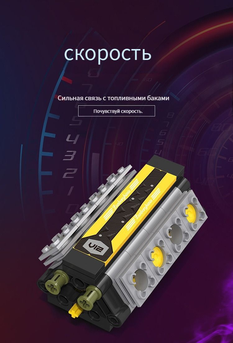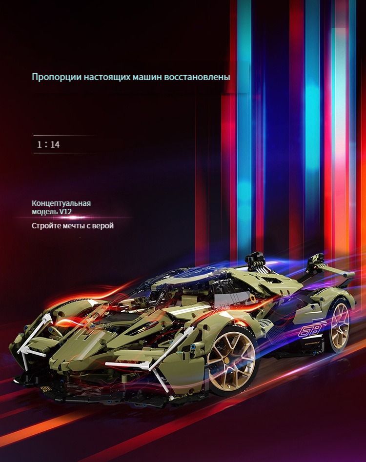 Спортивный автомобиль Lamborghini V12/Конструктор/Детали 1148/Совместим с(пожалуйста, обратитесь к описанию версии light dynamic)