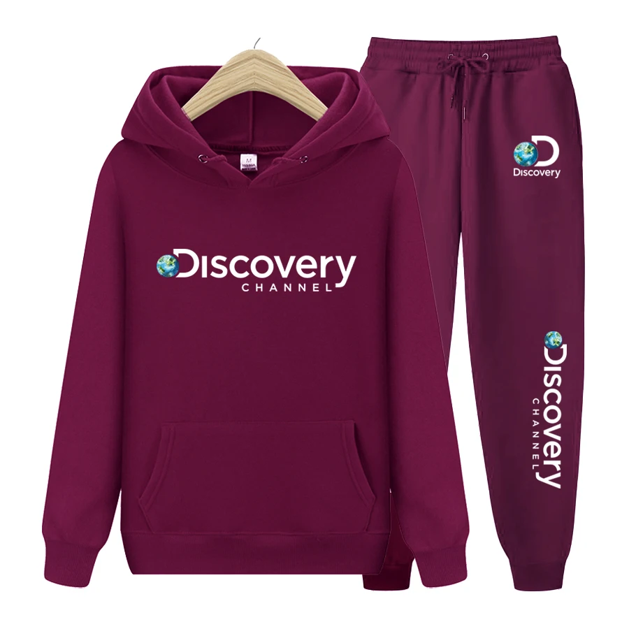 Спортивный костюм Discovery Channel для мужчин и женщин, куртка с капюшоном и штаны, повседневный мужской комплект спортивной одежды, Осень-зима 2023