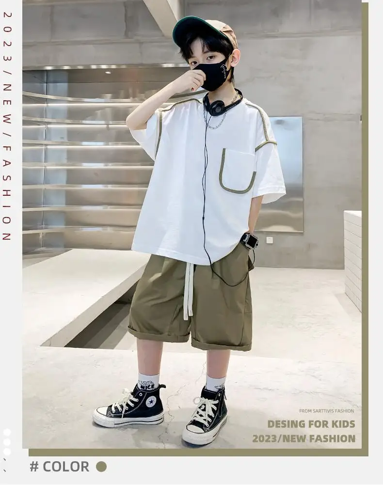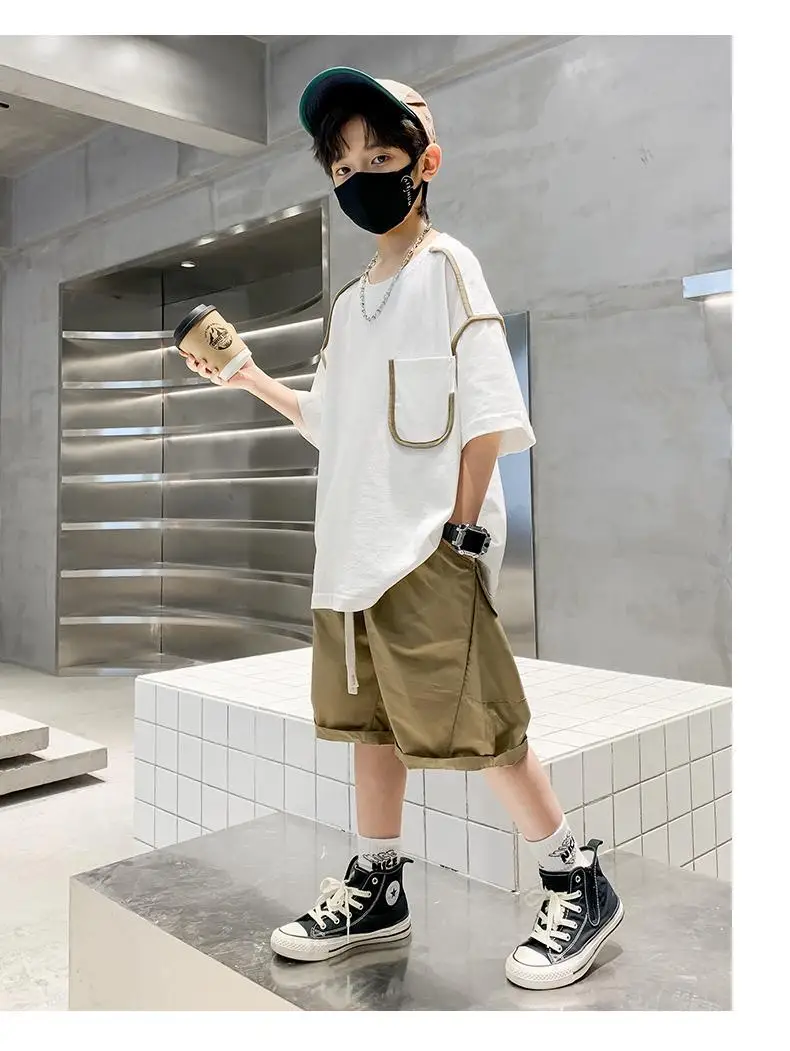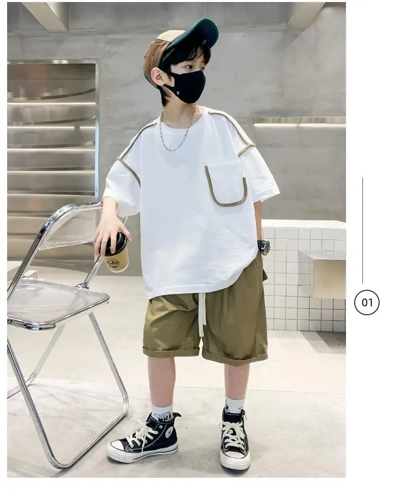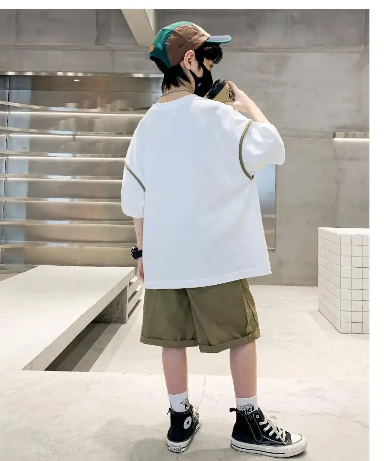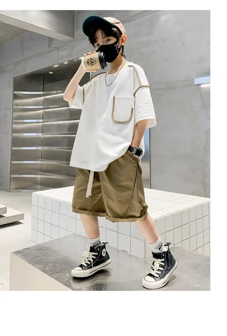 Спортивная Одежда для мальчиков-подростков Костюм для детской одежды Повседневная футболка Хлопок 2023 Летние Детские крутые комплекты одежды 5 7 9 11 13 14 лет
