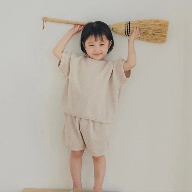 Спортивный костюм для маленьких девочек и мальчиков 2 шт., однотонный топ с круглым вырезом и шорты, комплект одежды, детские летние спортивные костюмы для бега