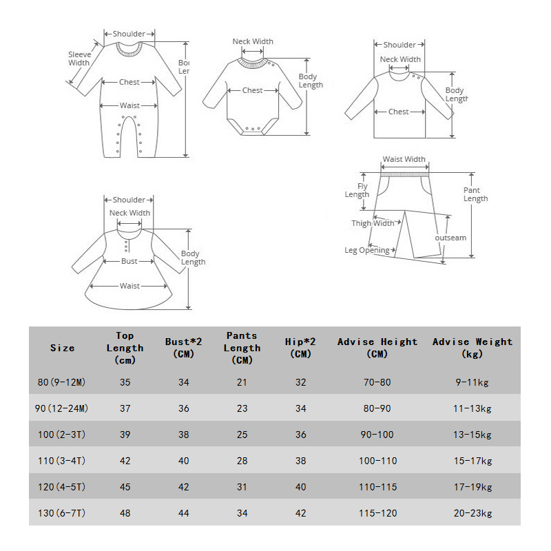 100 Длина топа: 39 см, обхват груди: 38*2 см, брюки: 25 см, возраст: От 2 до 3 лет