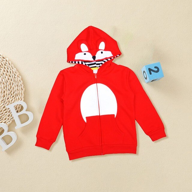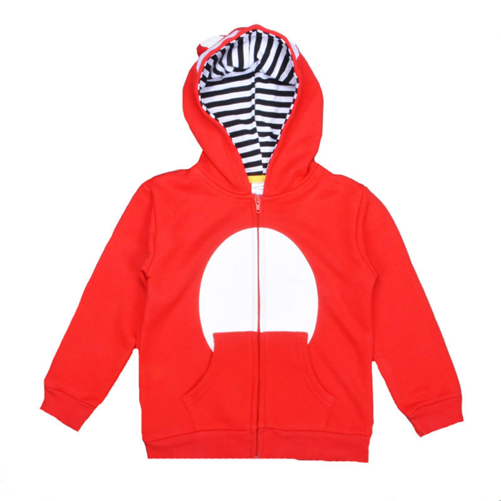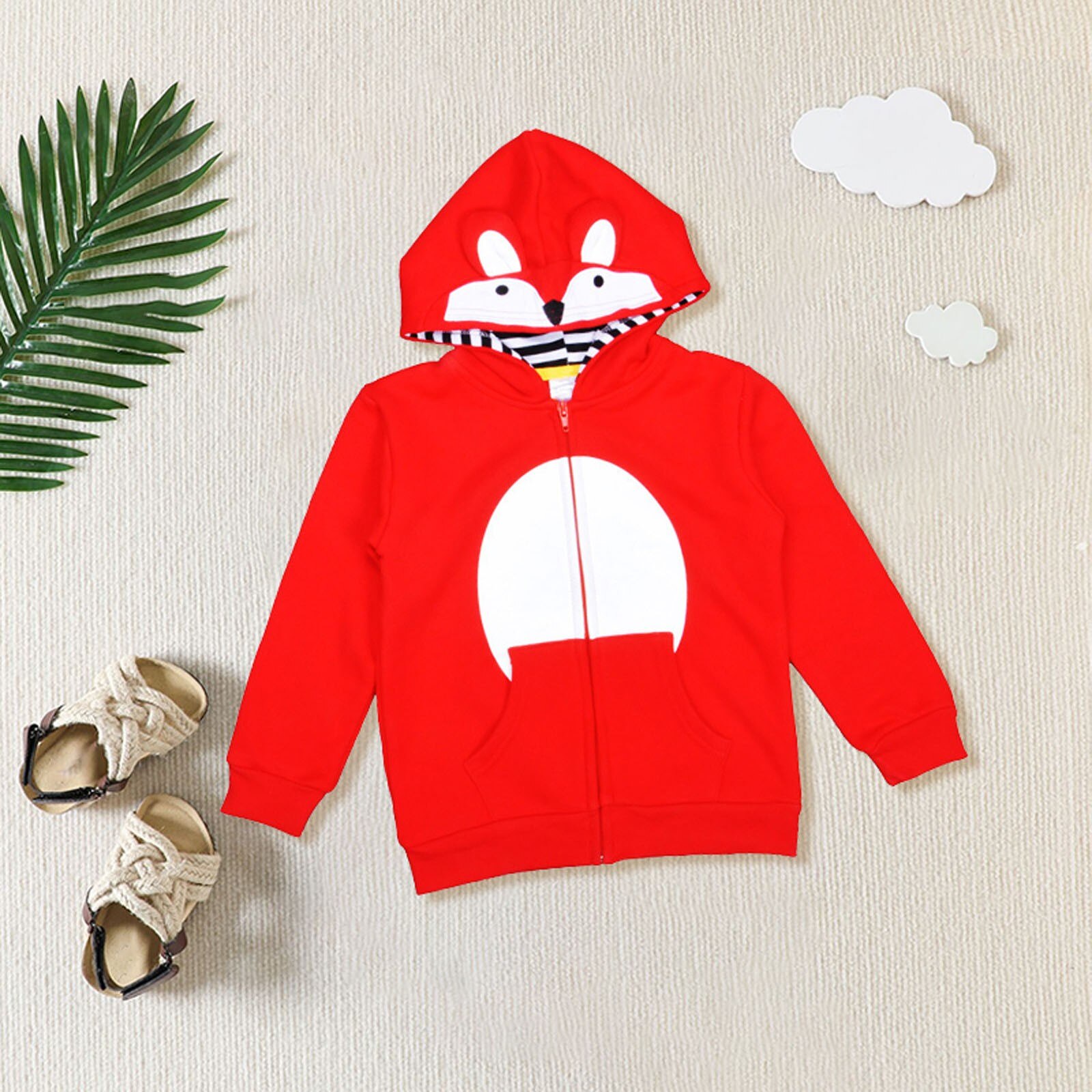 Мальчики и девочки с длинным рукавом с капюшоном Кардиган Куртка красный животных печати молнии спортивный костюм