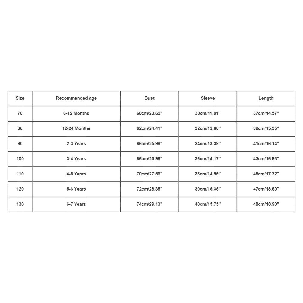 Размер: 90 Рекомендуемый возраст: От 2 до 3 лет Бюст: 66 см/25,98 дюйма Рукав: 34 см/13,39 дюйма Длина: 41 см/16,14 дюйма