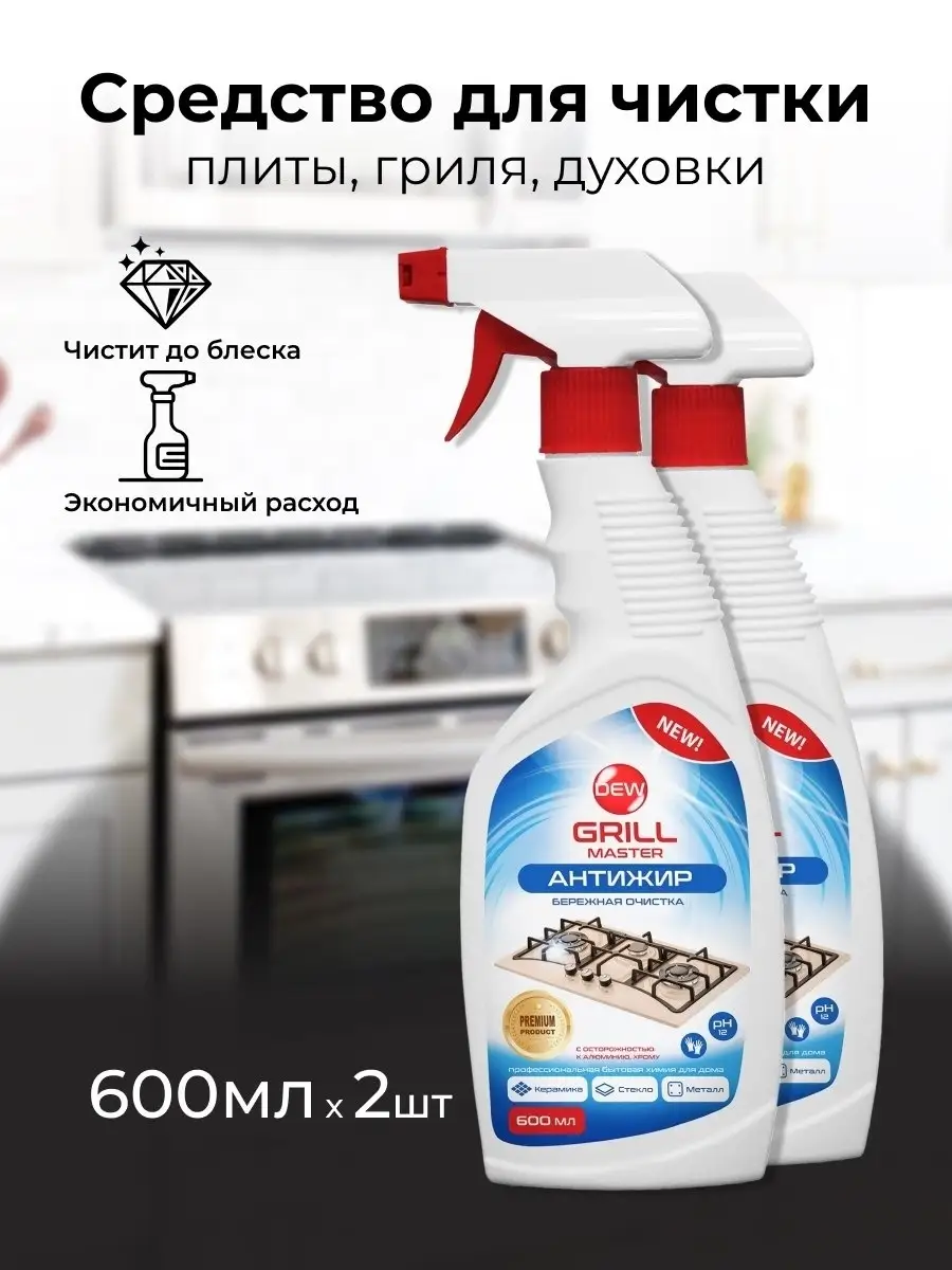 Описание: Профессиональное чистящее средство Grill master “Антижир” от DEW для быстрого удаления стойких и пригоревших жировых, а также масляных загрязнений нагара и копоти со сковородок, кухонных электро и газовых плит, микроволновых печей, грилей, мангалов, мультиварок, фритюрниц, духовых шкафов, стеклокерамических покрытий, кастрюль. Активные вещества, входящие в состав антижира, легко и быстро справляются с загрязнениями без особых усилий. Средство от жира удобно наносится с помощью распылителя и легко смывается водой. Чтобы повысить эффективность ухода, рекомендуется оставить средство на обрабатываемом участке на несколько минут, а затем удалить посредством губки или мягкой тканевой салфеткой без ворса. Отлично подходит для удаления копоти, нагара с кухонной плиты, прекрасно отмоет устойчивый слой жира с вытяжки, противня и решеток для шашлыка. Экономичен в использовании. Пусть уборка будет для вас в удовольствие! Вся наша продукция сертифицирована и произведена в России.