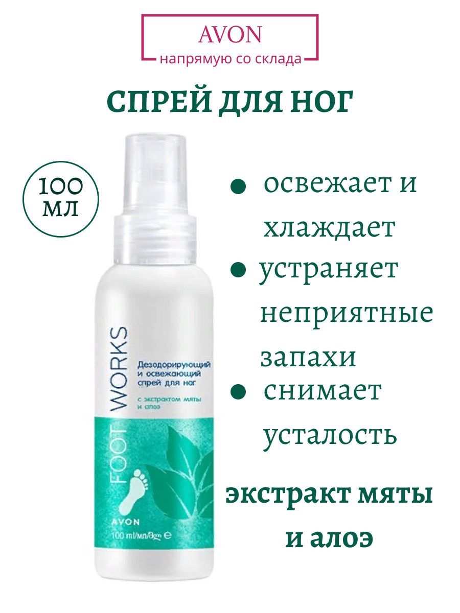 Avon спрей от потливости ног предназначен для ежедневной гигиены и ухода за ногами, быстро впитывается, не оставляет следов.