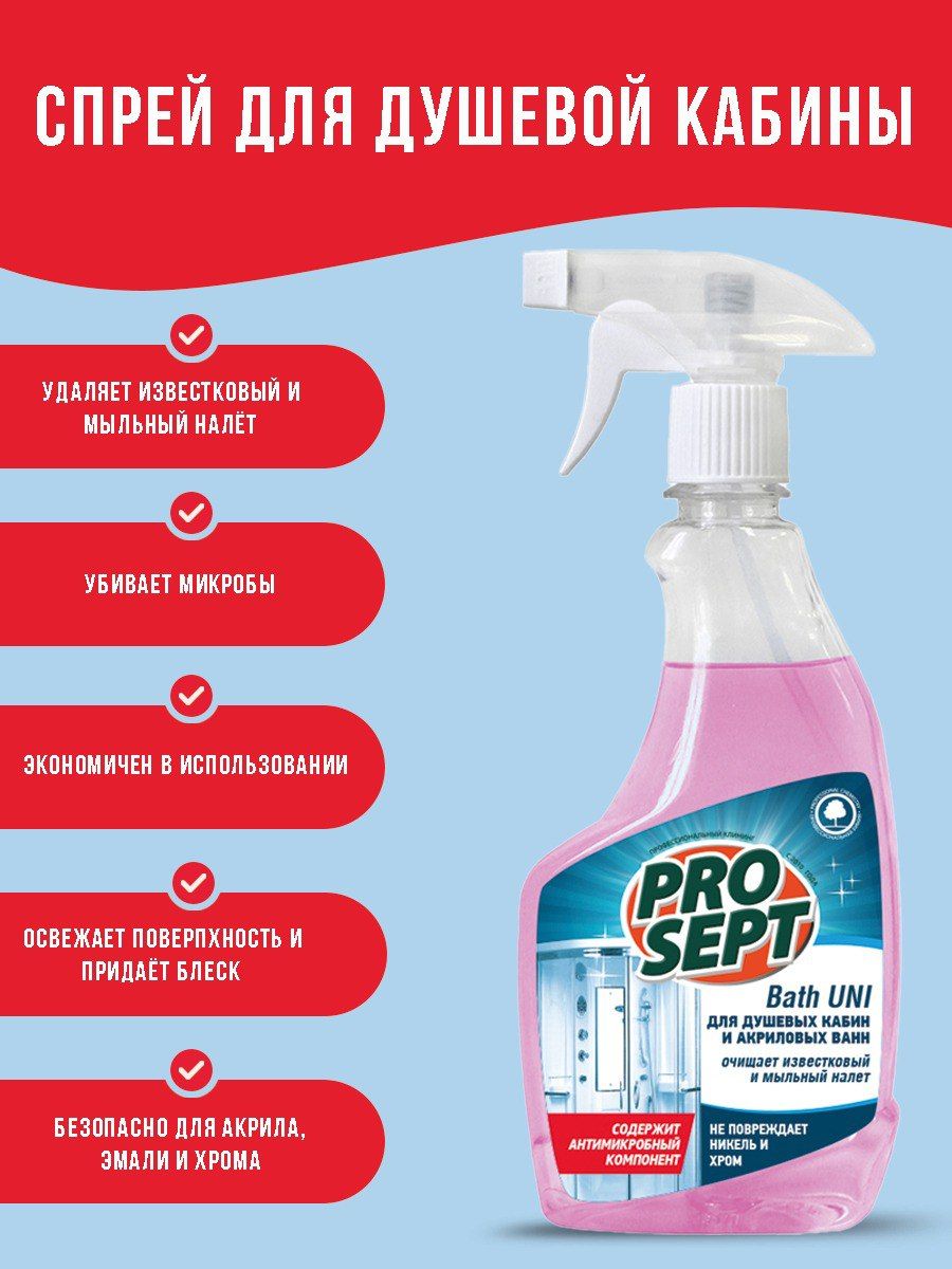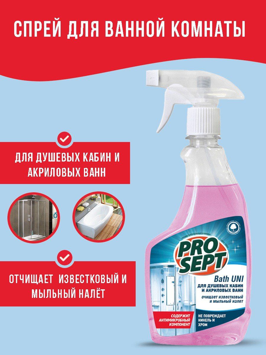 Спрей для душевых кабин и акриловых ванн Prosept Bath Uni, 500мл.