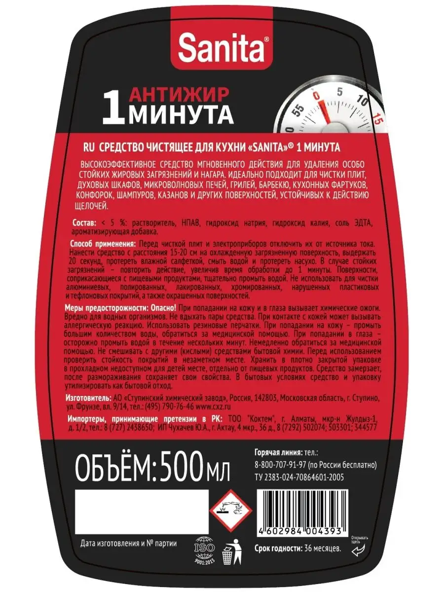 Описание: Спрей для кухни Sanita 1 минута, 500 млМгновенное действие. Рецептура, аналог Шуманит, без резкого неприятного запаха. Предназначено для чистки кухонной бытовой техники, микроволновых печей, плит, вытяжек.