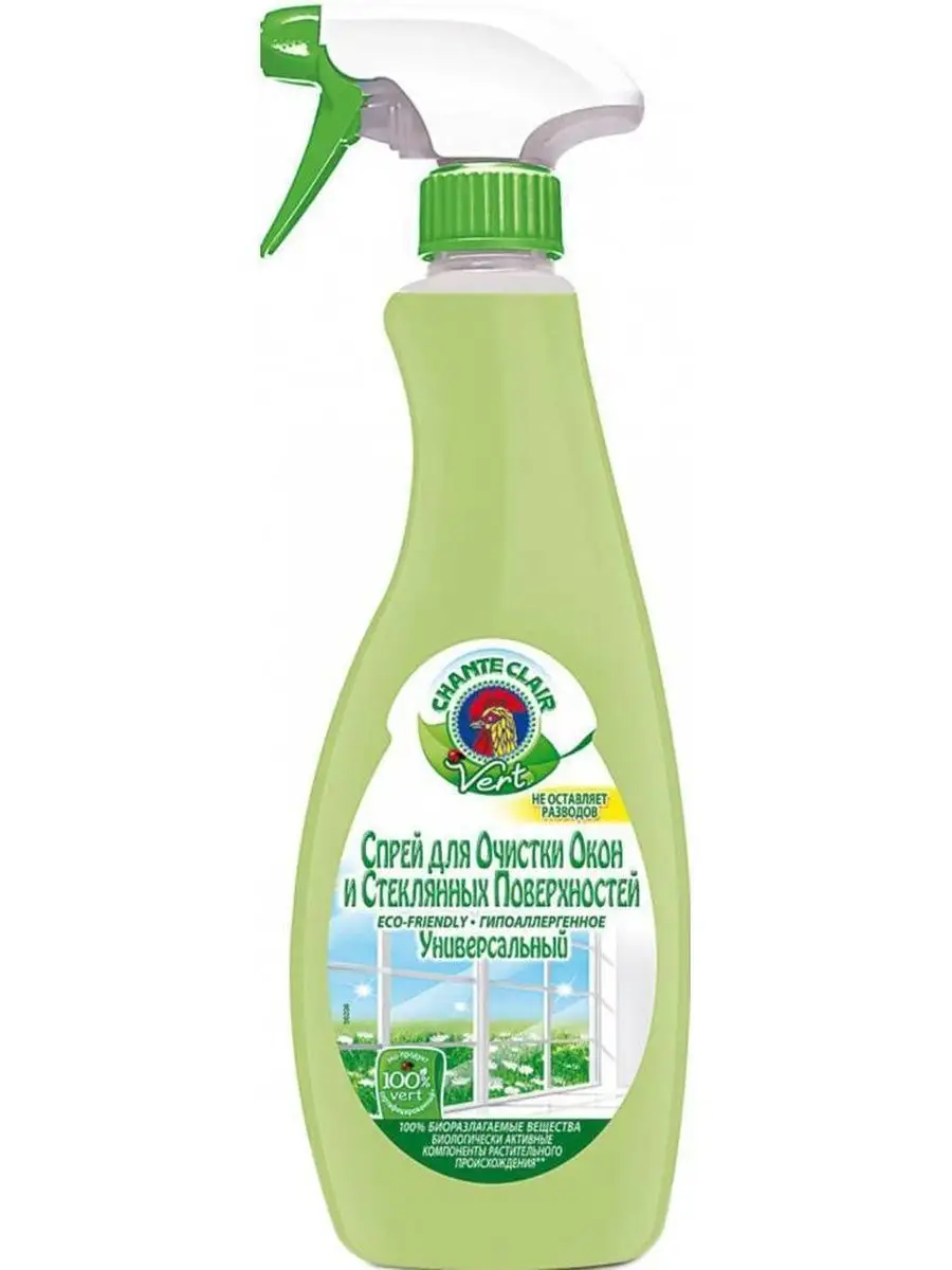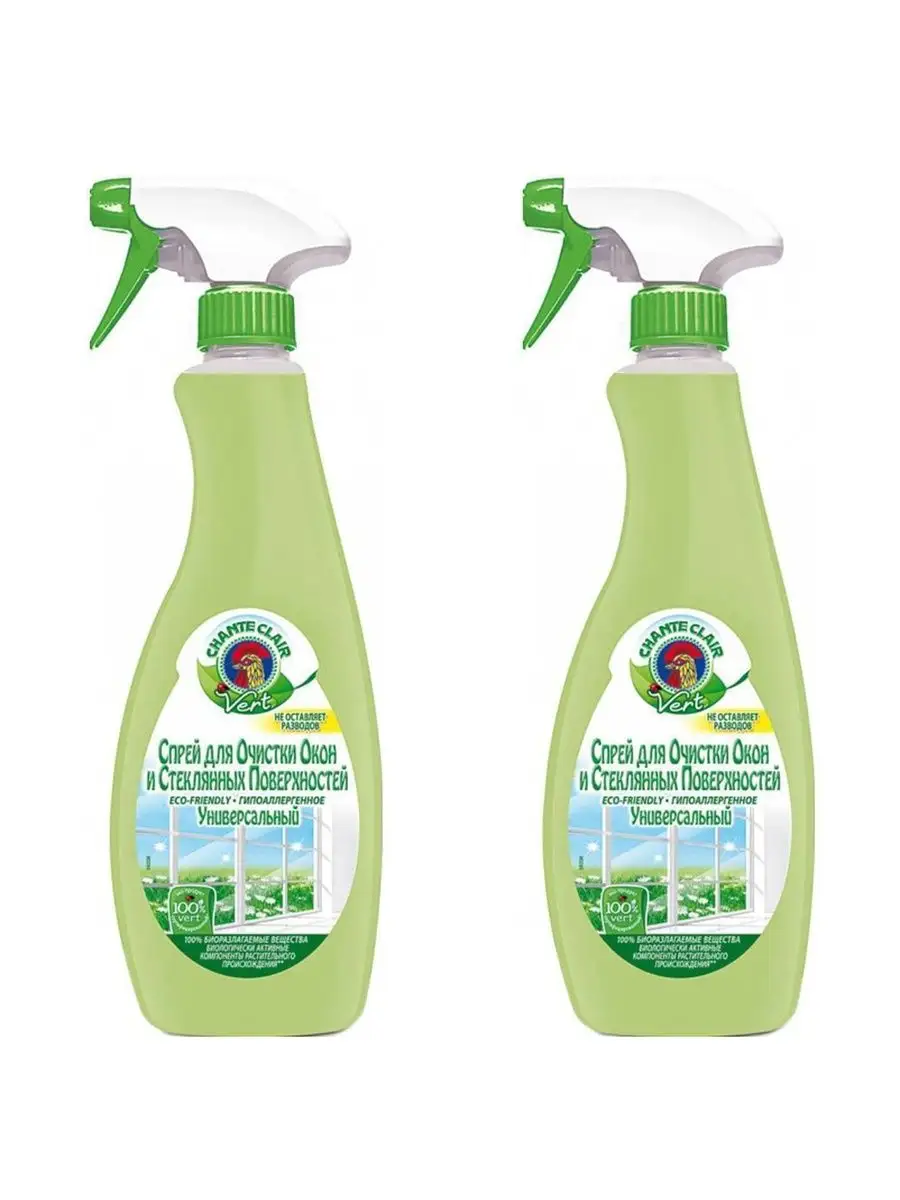 Описание: Спрей для очистки окон и стеклянных поверхностей, 625мл, 2 штуки. Спрей Chante Clair Vert предназначен для мытья оконного, витринного, автомобильного стекла и зеркал. С легкостью устраняет жиры, грязь, сажу. Спрей для очистки окон ChanyeClair Придает поверхности блеск и не оставляет разводов. Способ применения: Нанести на поверхность спрей, очистить поверхность с помощью тряпки до полного высыхания. Формула облегчает удаление грязи для максимального блеска. Устраняет следы воздействия факторов окружающей среды, таких как дождь, пыль и тому подобное. Очищает без промывки. Не оставляет следов.