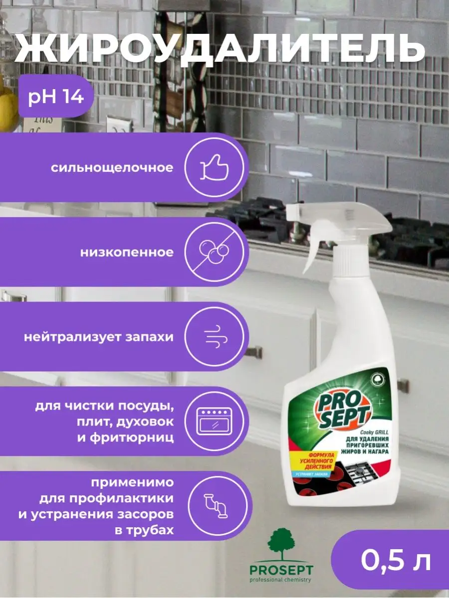 Описание: Cooky Grill - это сильнощелочное низкопенное чистящее средство, способное удалить пригары и засохшие загрязнения, эффективно нейтрализуя неприятные запахи. Идеально подходит для чистки посуды, грилей, духовых шкафов, плит, вытяжек, фритюрниц, противней и сковород ручным способом. Применимо для профилактики и устранения засоров в трубах. В производстве всех товаров PROSEPT используются только современные материалы и сырье, не приносящие вреда окружающей среде. В разработках исключено использование устаревших технологий и стандартов, широко используемых и по сей день многими компаниями. PROSEPT позаботится, чтобы окружающий мир был чистым, красивым и защищенным, и сохранился таким для Ваших детей и внуков!