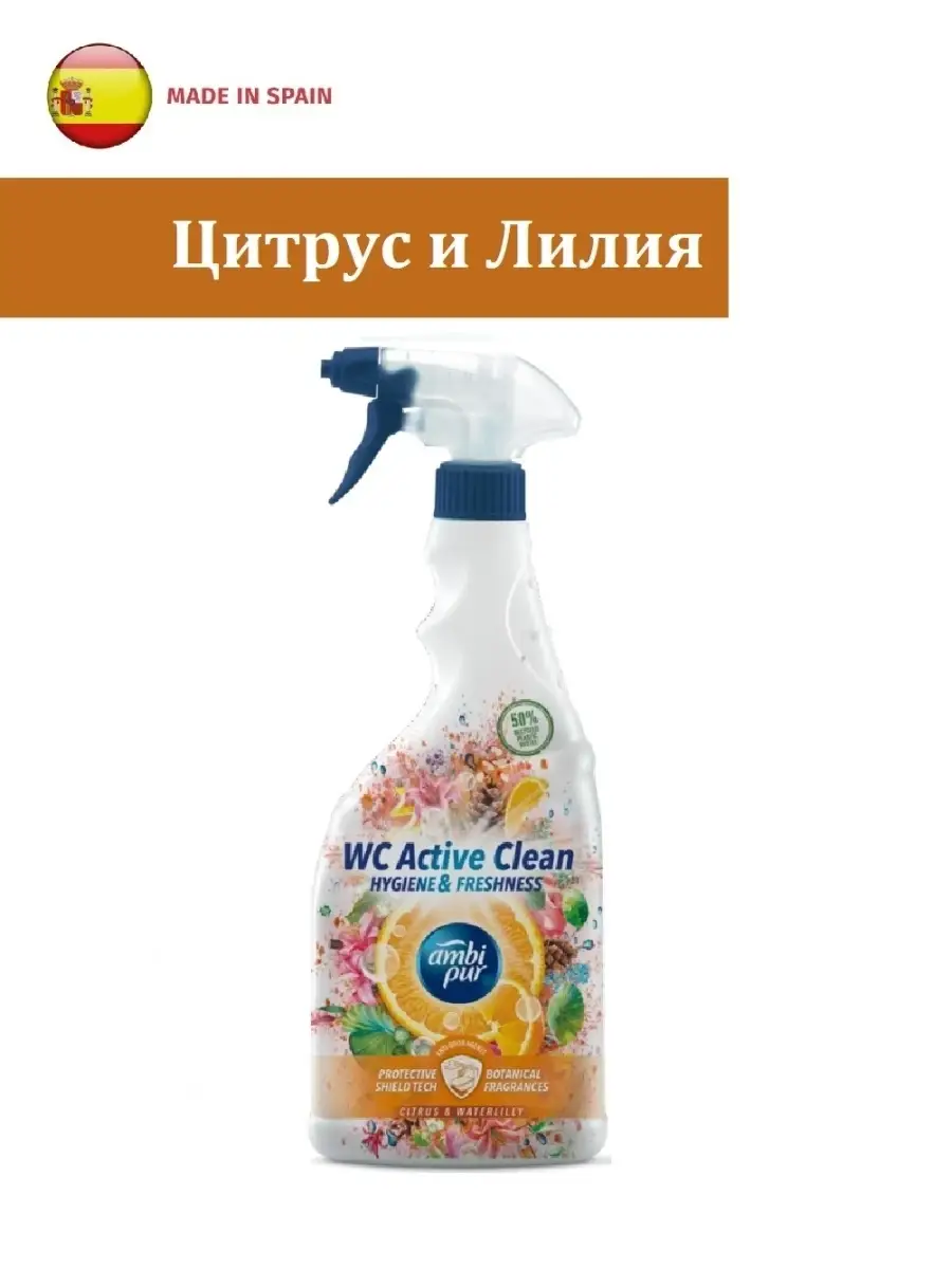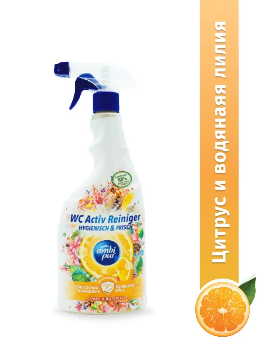 Описание: Универсальный спрей для чистки ванны и туалета Ambi Pur WC Active Reiniger Botanical Fragrances, 750 мл. обеспечивает высокий уровень чистоты в вашем туалете и ванной комнате. Средство эффективно растворяет грязь и известковый налет, оставляя после себя легкий и свежий аромат дикого шалфея и кедра. Спрей биорастворимым и обладает дезинфицирующими свойствами. Удобная форма бутылки позволяет спрея очищать труднодоступные места, в том числе под ободком унитаза, уголках душевых кабин и под роликами дверей гидробоксов. Не содержит компонентов животного согласования (vegan friendly), а также упаковка пригодна для вторичной переработки. Хранить в недоступном для прямых солнечных лучей и недоступном для детей месте. Назначение: для чистки туалета, биде, гидробоксов, душевых кабин и ванной.