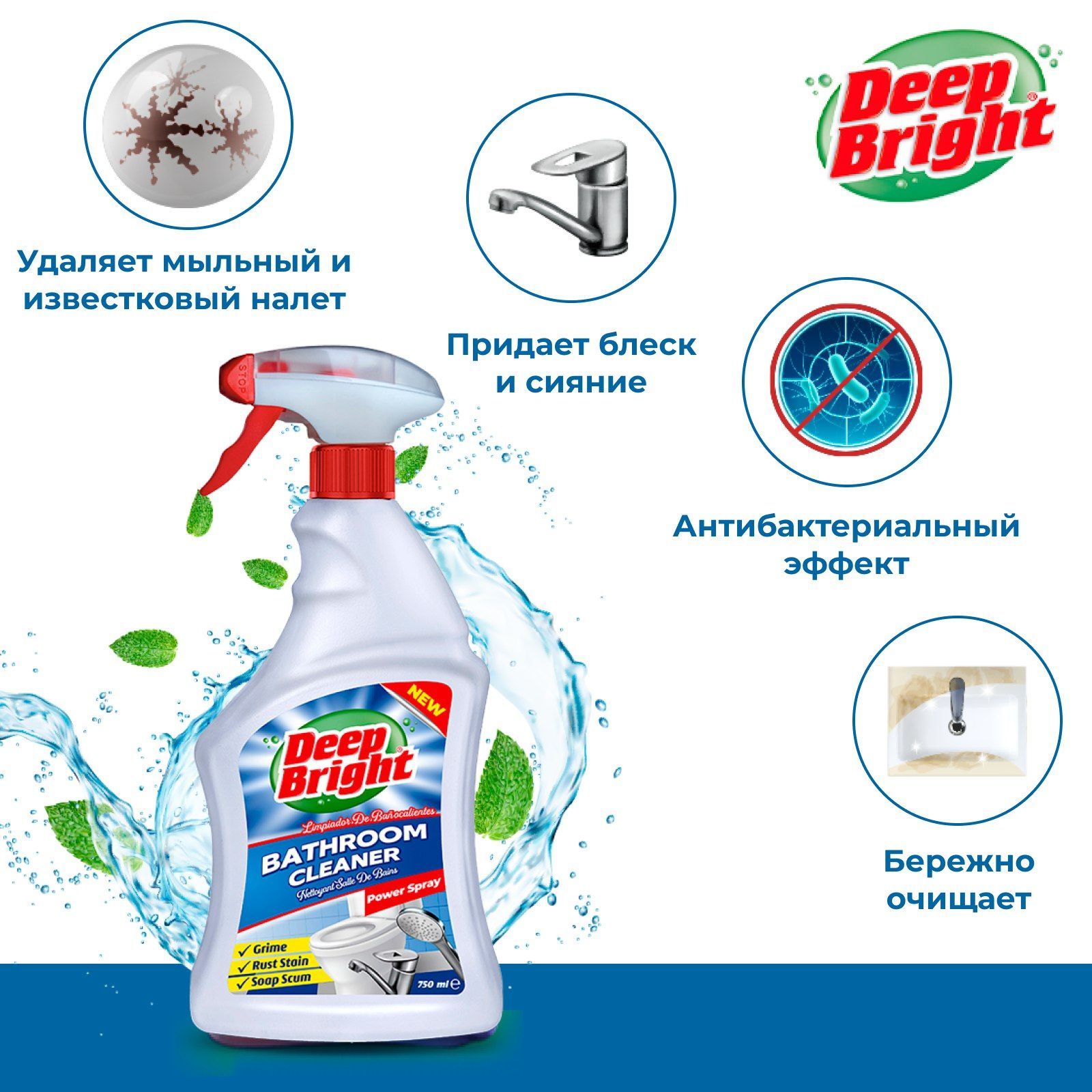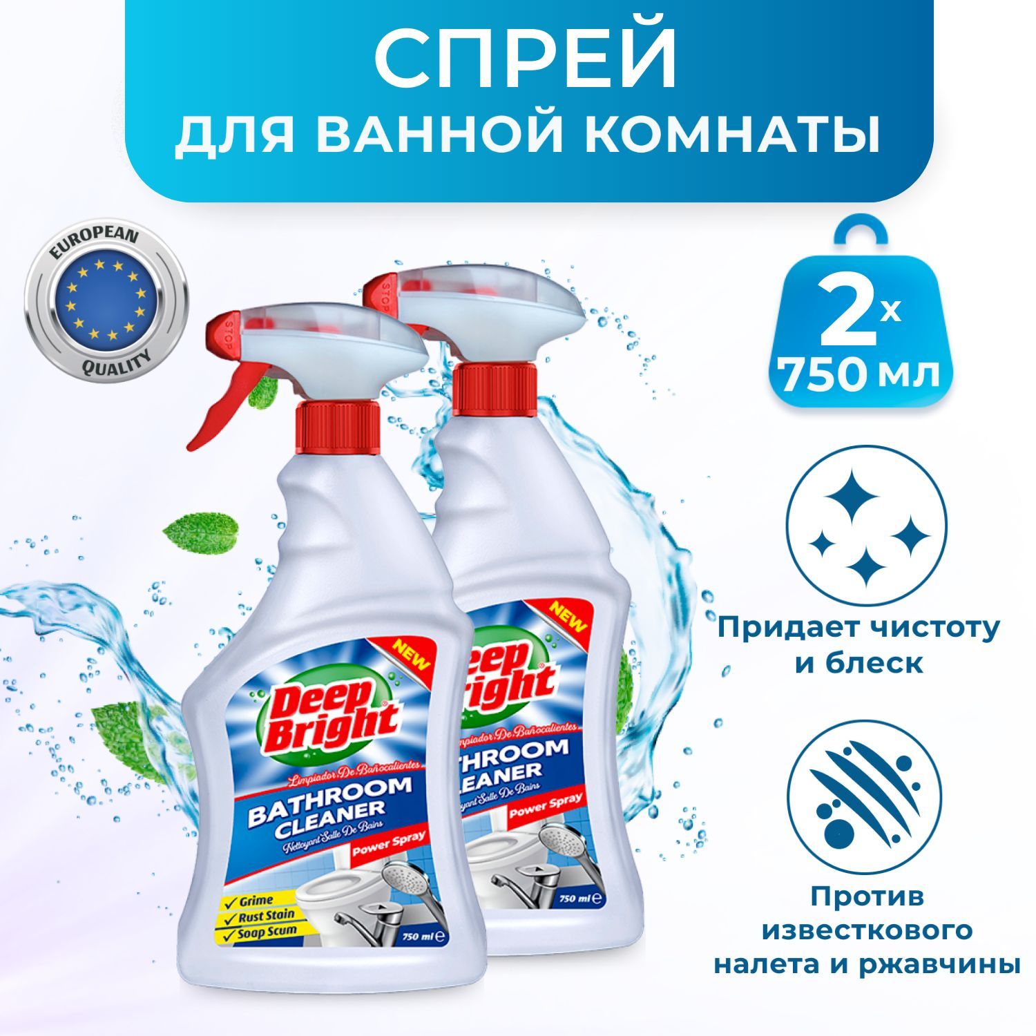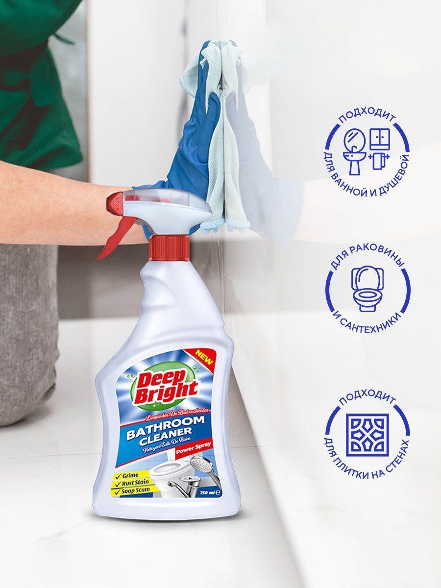 Спрей для ванной, универсальное чистящее средство DEEP BRIGHT, 2 шт х 750 мл, Мгновенный эффект