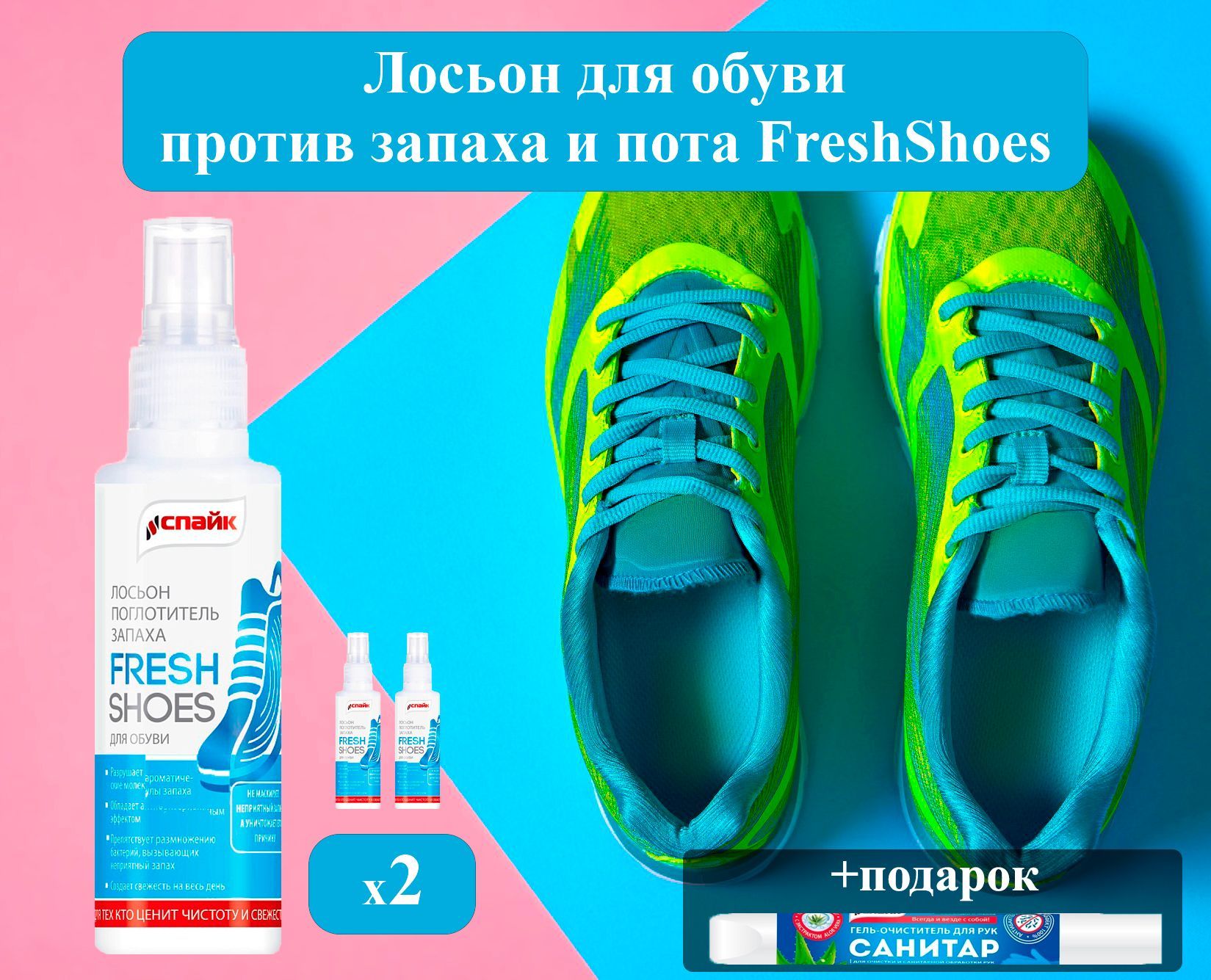 Спрей от запаха и пота для обуви FreshShoes, 2шт по 100 мг. Уменьшение потоотделения, Устранению неприятного запаха, Антибактериальный. + подарок