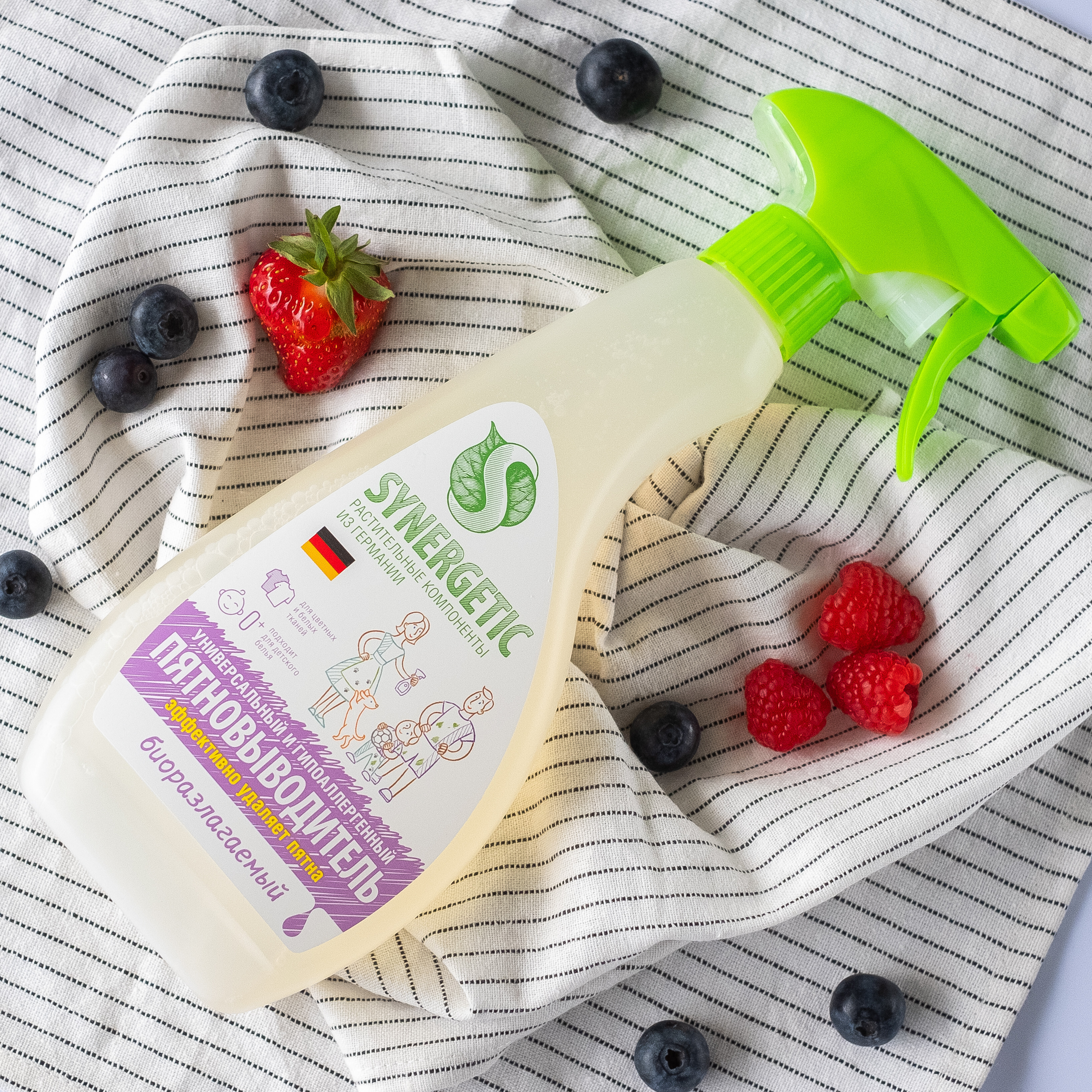 Описание: Биоразлагаемый гипоаллергенный универсальный пятновыводитель SYNERGETIC – универсальное средство для эффективного удаления загрязнений и трудновыводимых пятен от масла, жира, какао, ягод, травы, чернил, кофе, вина, крови на белом и цветном белье из натуральных и синтетических тканей. Удобный флакон с распылителем идеально подходит для предварительной обработки пятен. Гипоаллергенный пятновыводитель подходит для детского белья. Полностью выполаскивается из волокон ткани и не остается на одежде. Не содержит красители, ароматизаторы, фосфаты, фосфонаты, акрилаты, агрессивные ПАВ, ЭДТА, оптические отбеливатели.Комбинация пяти видов энзимов (протеаза, амилаза, целлюлаза, липаза, маннаназа) и растительных ПАВ эффективно удаляет загрязнения и застарелые пятна с волокон ткани.Пятновыводитель SYNERGETIC не вредит микрофлоре септических установок и биоразлагается в условиях естественной среды.