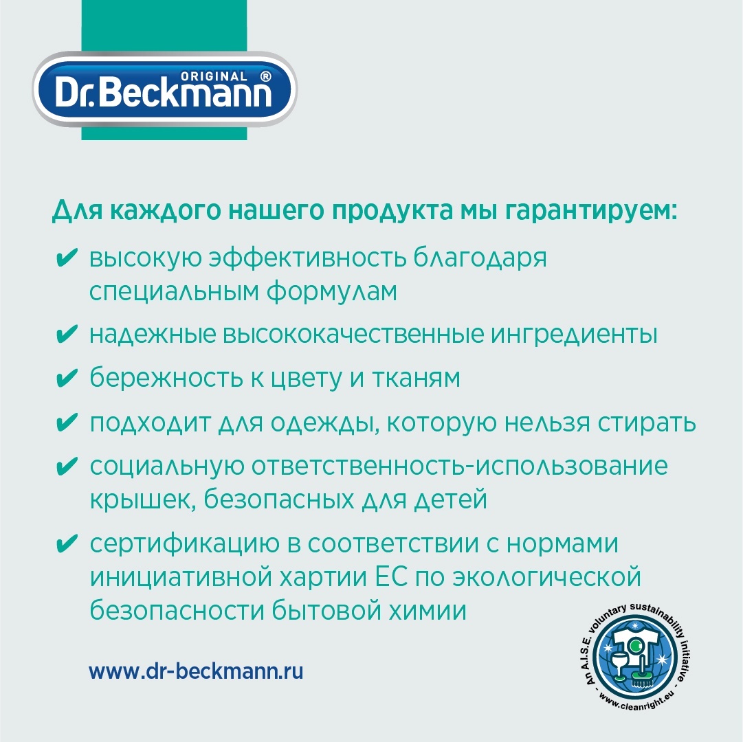 Описание: Спрей-пятновыводитель Dr. Beckmann "Дезодорант и пот" идеальный помощник каждой хозяйки. Следы от пота и дезодоранта приводят к образованию устойчивых пятен, запах пота проникает глубоко в ткань. Обычные пятновыводители не могут с этим справиться, пятна становятся больше, и после каждой носки их все труднее вывести. Но со спреем-пятновыводителем Dr. Beckmann "Дезодорант и пот" Вы можете забыть о проблемах с пятнами. Специальный состав продукта эффективно удаляет такие пятна и уничтожает запах. Средство может применяться на белых и цветных тканях. Спрей обладает профилактическим эффектом в случае применения перед каждой стиркой.