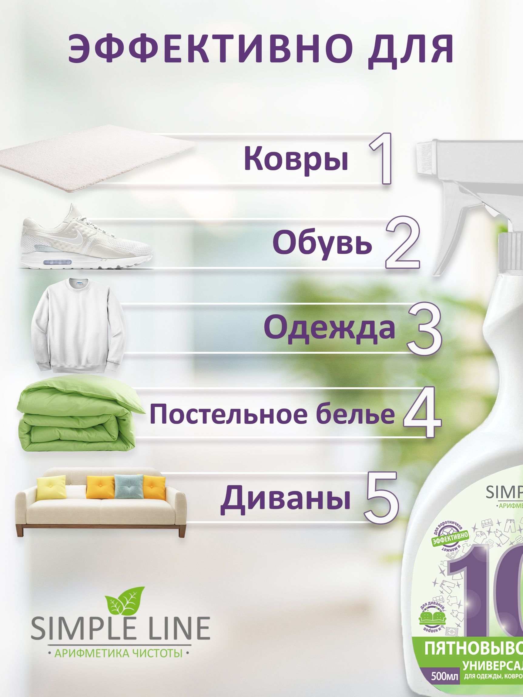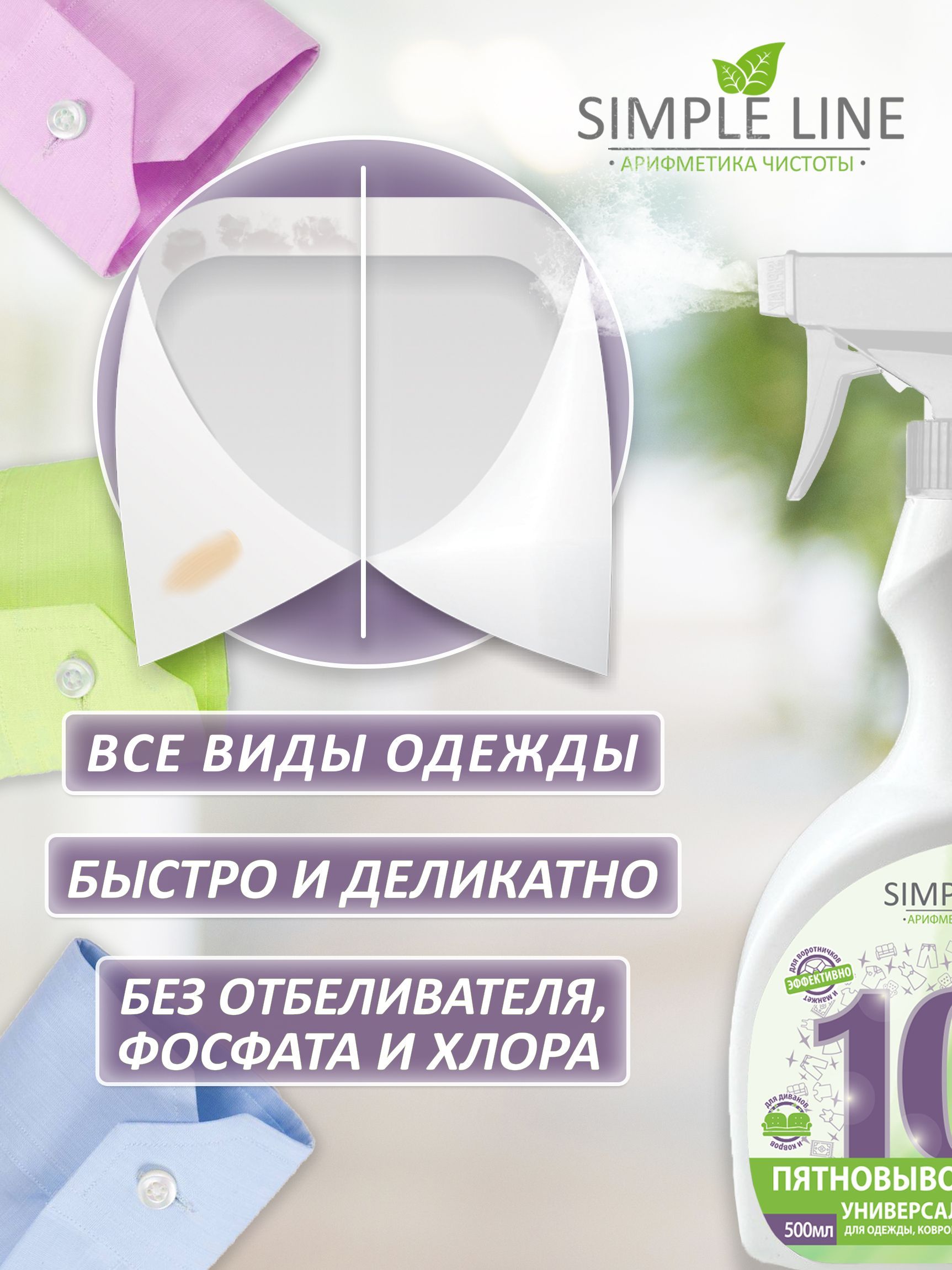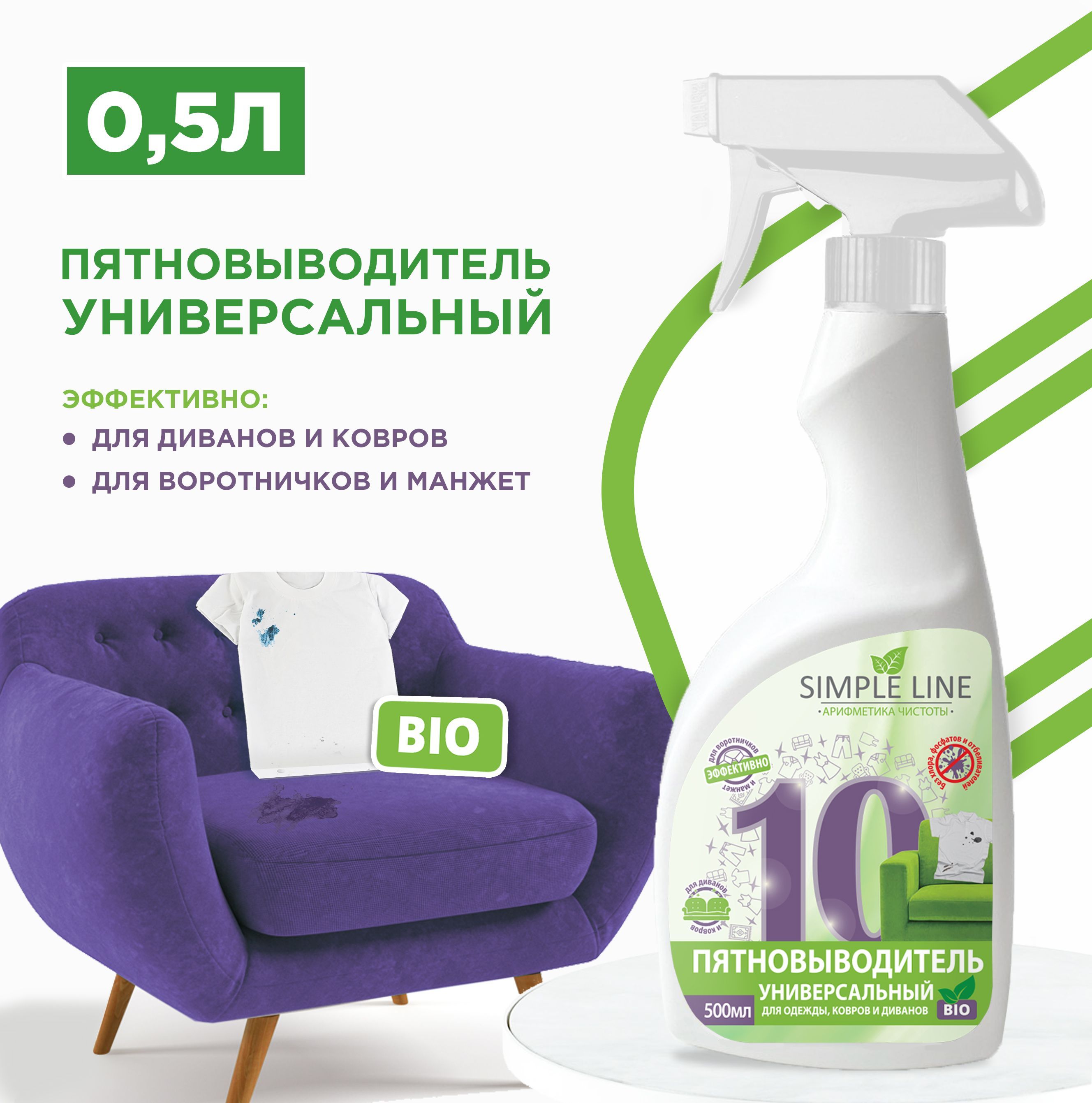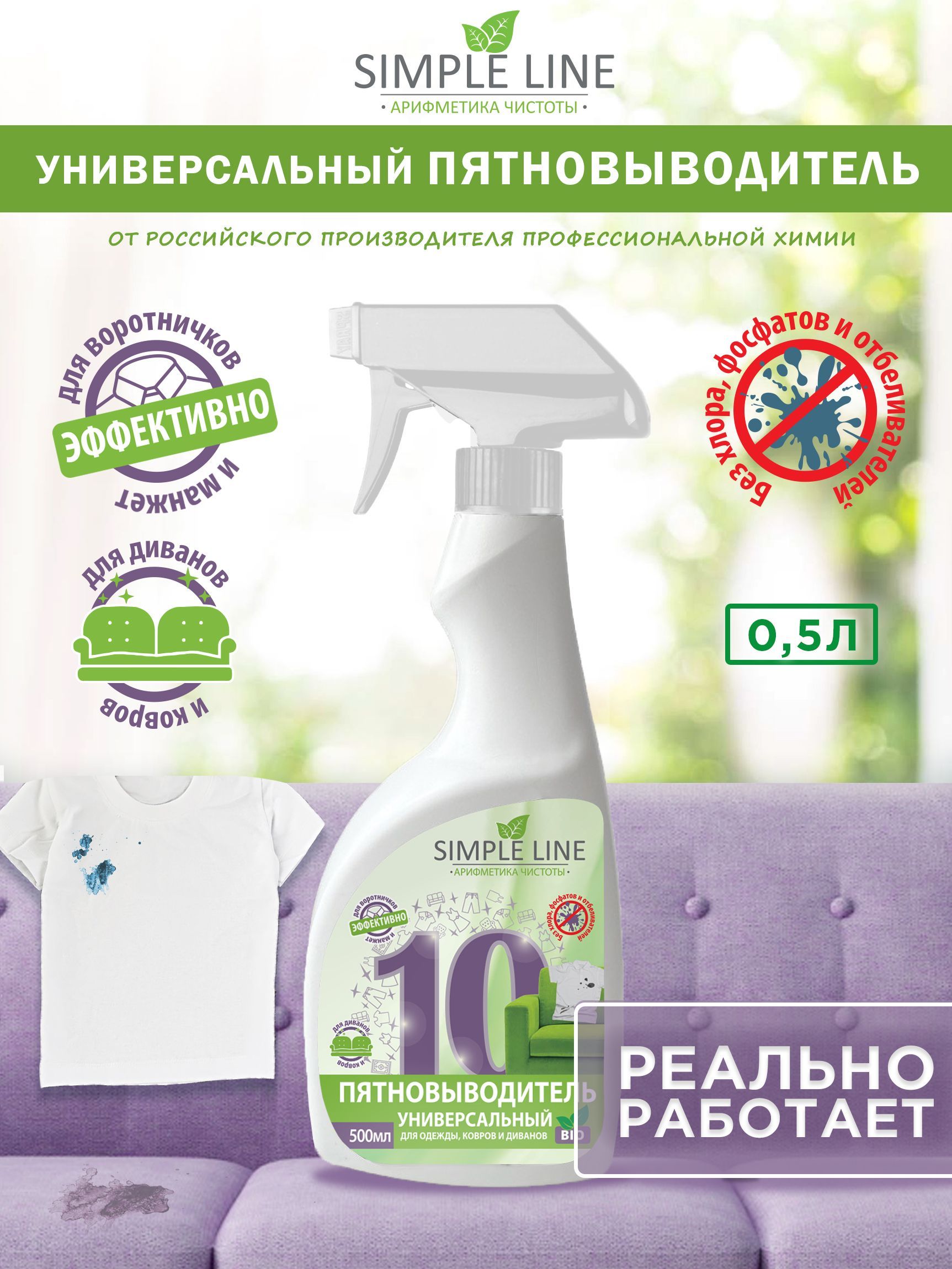 Спрей пятновыводитель SIMPLE LINE. Универсальное чистящее средство без хлора для детского и взрослого белья. Жидкость против пятен для уборки и чистки мягкой мебели, дивана, ковров, тканей. 500 мл