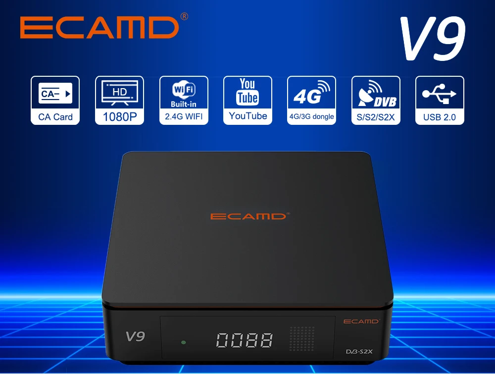 Спутниковый приемник ECAMD V9 DVB-S2X встроенный Wi-Fi H.265, обновленный V9 Super v8x V8 Nova v7s2x s5x, отправка из Испании