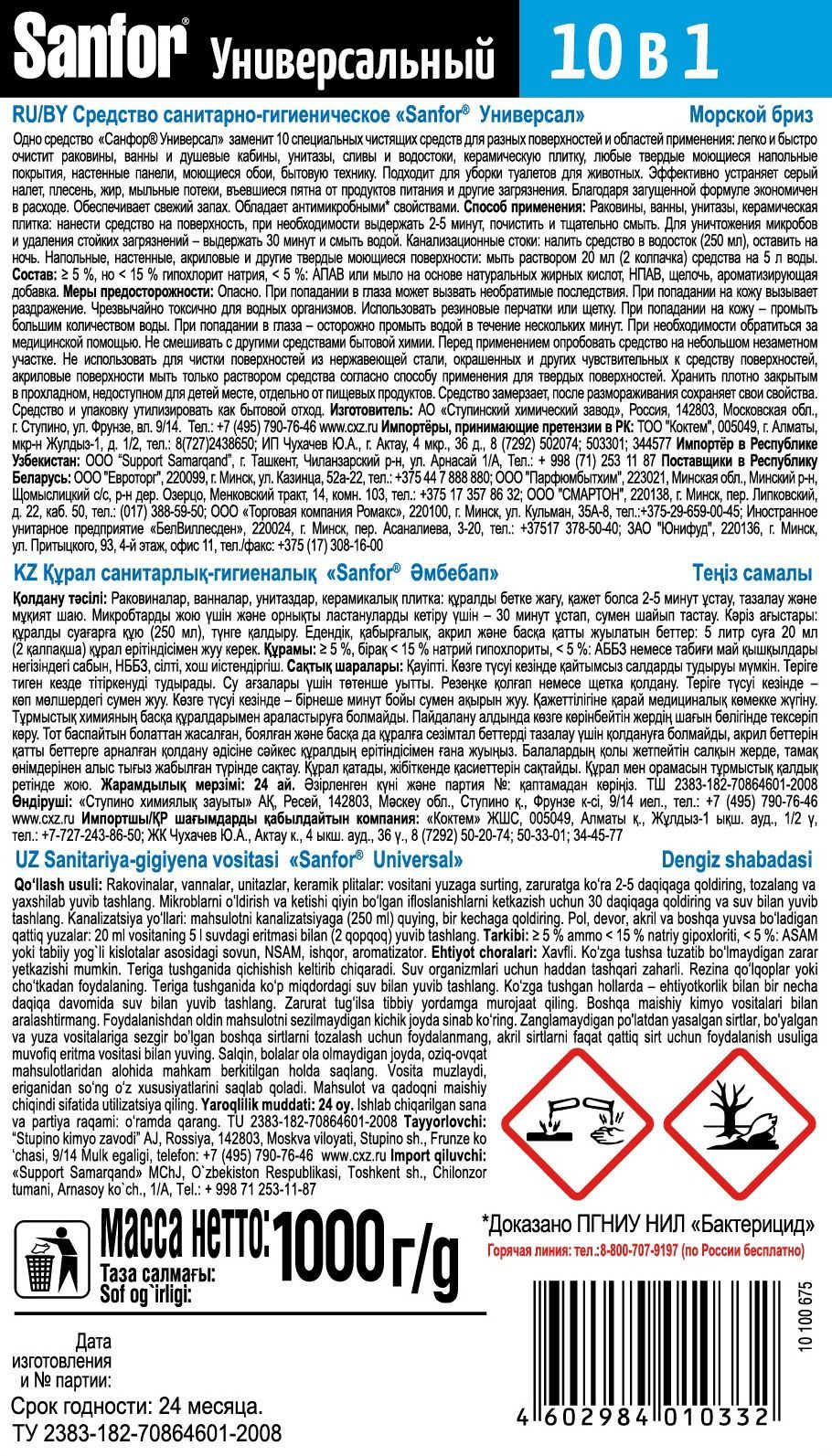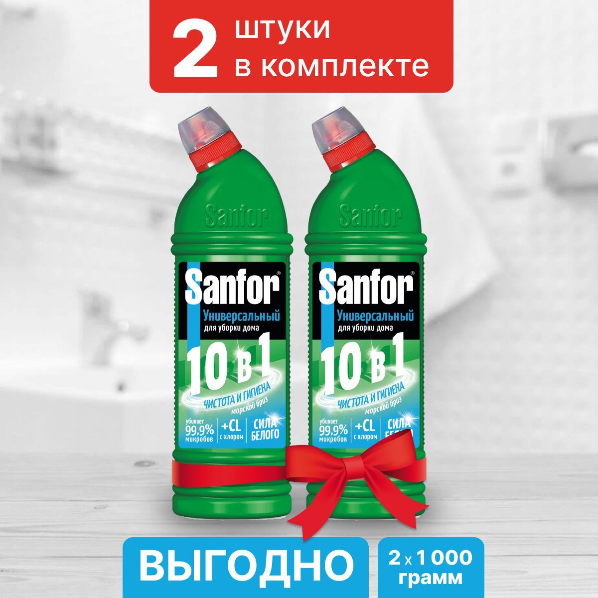 Средство чистящее дезинфицирующее SANFOR УНИВЕРСАЛ Морской бриз, 2000 г , 2 шт