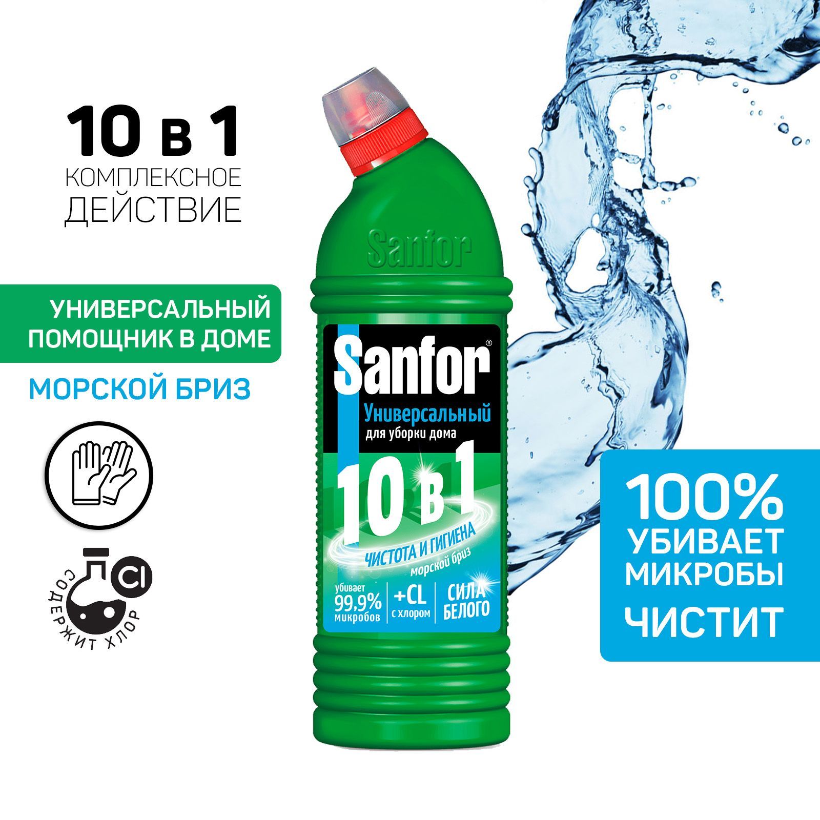 Описание: Набор SANFOR Универсал, Морской бриз, 1000 г - 2 штГель для уборки 10 в 1 от Sanfor – универсальное чистящее средство для эффективной и быстрой очистки различных поверхностей в вашем доме. Он идеально подходит для уборки ванной, душевой кабины, унитаза, раковины, плитки и напольных покрытий, а также поверхностей на кухне. Очиститель имеет дезинфицирующее действие, благодаря которому удаляются микробы и неприятные запахи. Оно эффективно чистит загрязнения и жир, быстро придавая поверхности блеск и белизну. Этот концентрированный жидкий гель имеет антибактериальные свойства, дезинфицируя и уничтожая микробы, обеспечивая максимальную чистоту и гигиену. Поставляется в литровой бутылке, что делает его экономичным в использовании. Средство содержит хлор для дезинфекции. Он эффективно очищает от разводов и не оставляет следов на поверхности, устраняя серый налет, грязь, плесень и грибок. Концентрат можно использовать не только для мытья туалета и кухни, но и других помещений в доме. Он подходит для чистки сантехники, слива, водостоков и других поверхностей, гарантируя чистоту и безопасность надолго. Погрузитесь в атмосферу свежести и чистоты с ароматом «Морской бриз», который оставляет моющий гель Санфор после уборки. Ваш дом будет наполнен приятным запахом, а вы сможете насладиться чистотой и белизной, которые обеспечивает это мощное средство бытовой химии. Благодаря загущенной формуле, гель расходуется экономично, равномерно распределяется и не стекает с наклонных поверхностей. Флакон оснащен антискользящей поверхностью, его удобно удерживать в руке во время уборки, а также блокиратором крышки для защиты от детей. Уважаемые покупатели! Обращаем Ваше внимание на возможное изменение упаковки.