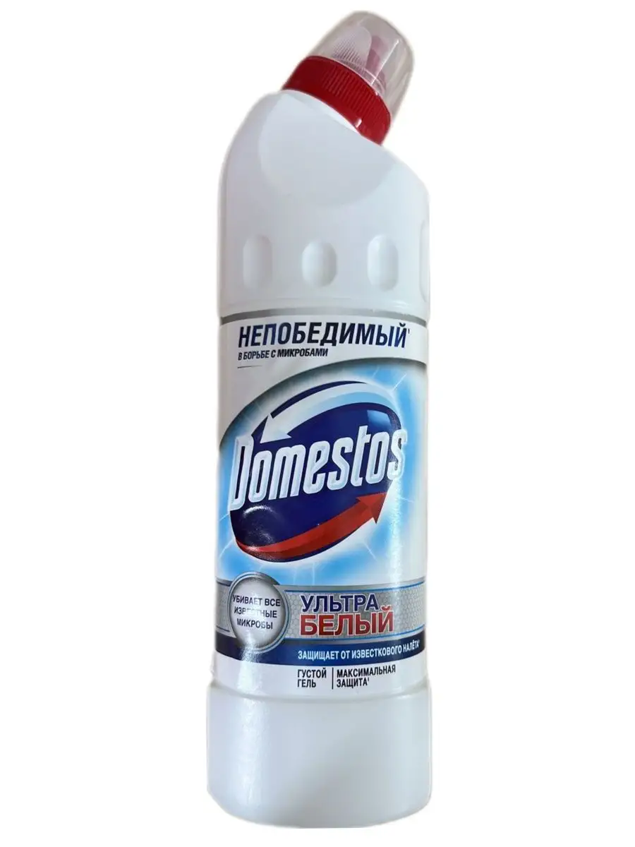 Описание: Универсальное средство Domestos «Ультра белый» обладает отбеливающим действием. Убивает все известные микробы и защищает от известкового налета. Максимальная защита и приятный аромат. Непобедимый в борьбе с микробами! Гель можно использовать для различных целей. В чистом виде – для чистки и дезинфекции унитаза, ванны, стоков и сливов; в разбавленном – для мытья различных поверхностей (пол, кафель, детские игрушки) и отбеливания белья.