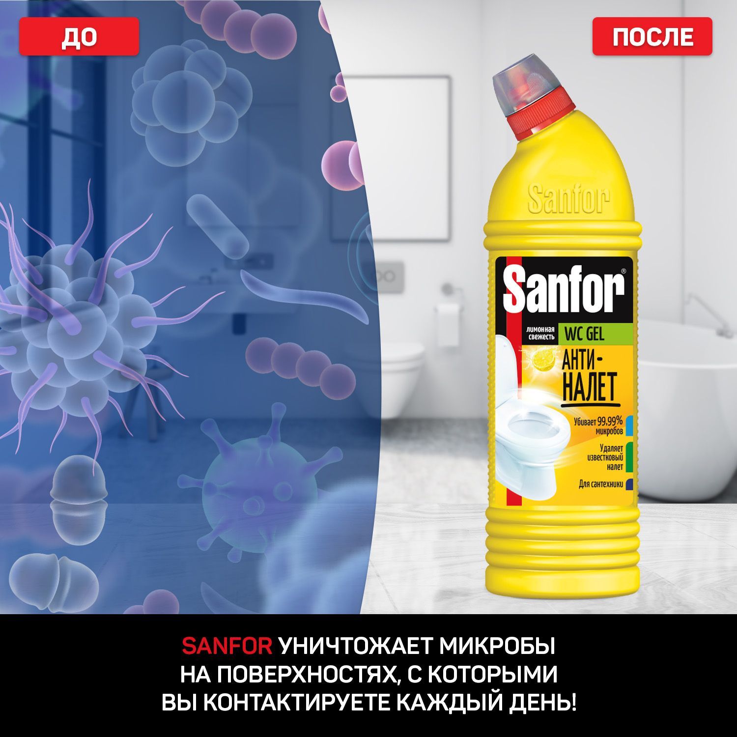 Бытовая химия от Санфор - это надежные моющие средства для уборки и поддержания чистоты и блеска вашего дома.Убивает микробы за 5 минут! Способ применения! Чисто там, где Sanfor!