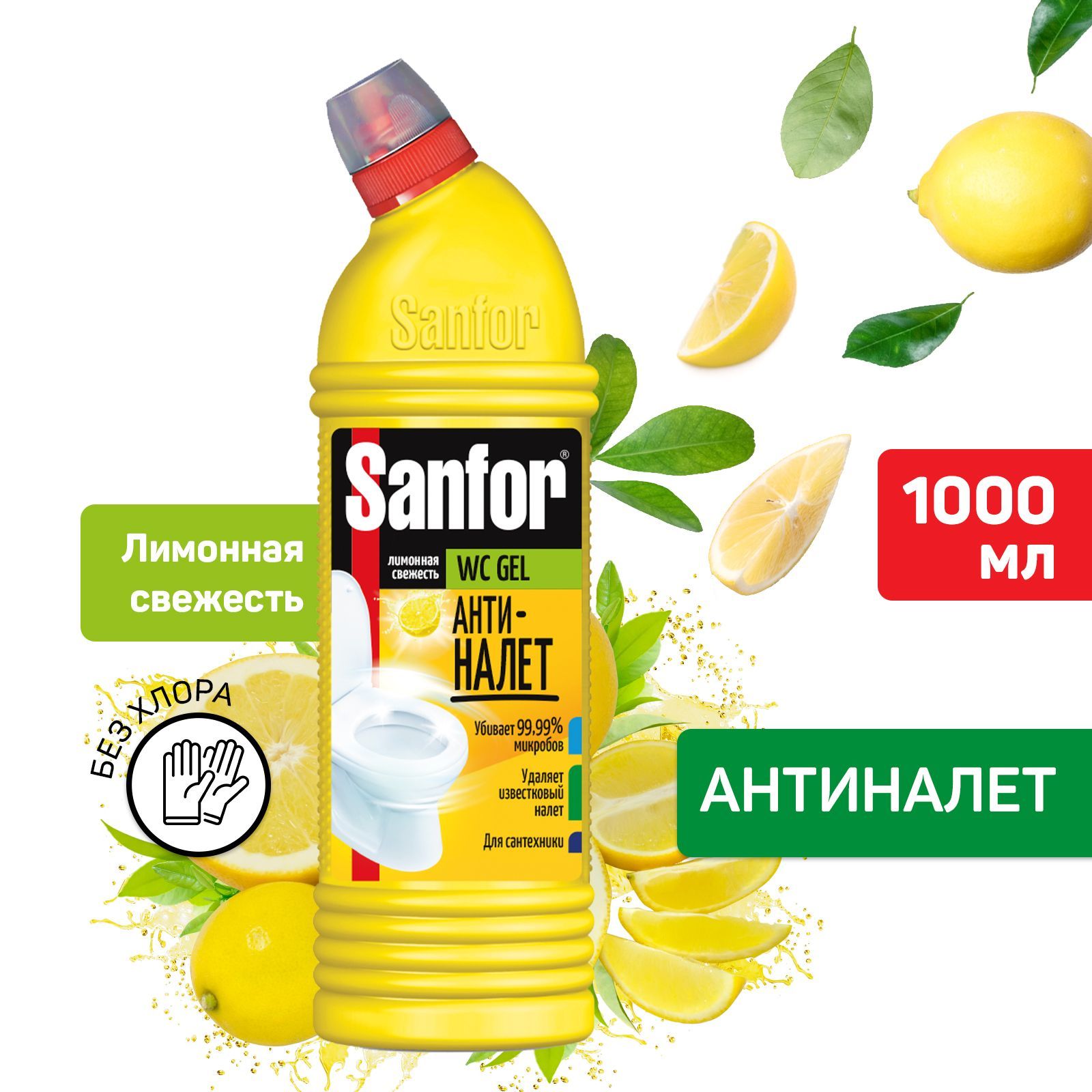 =SANFOR WC гель, Лимонная свежесть, 1000 г - 2 шт
