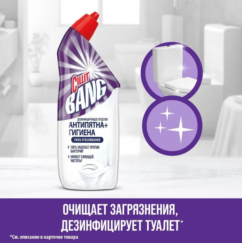 Средство дезинфицирующее для туалета Cillit Bang "Антиналет + Гигиена. Сила отбеливания", 750 мл