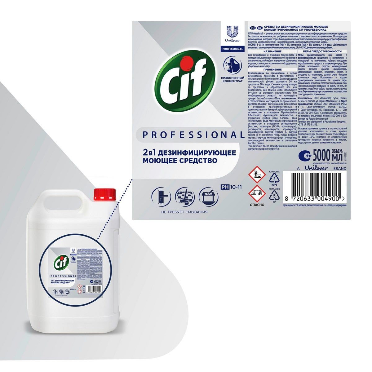 Средство дезинфицирующее моющее Cif Professional концентрированное, 5л