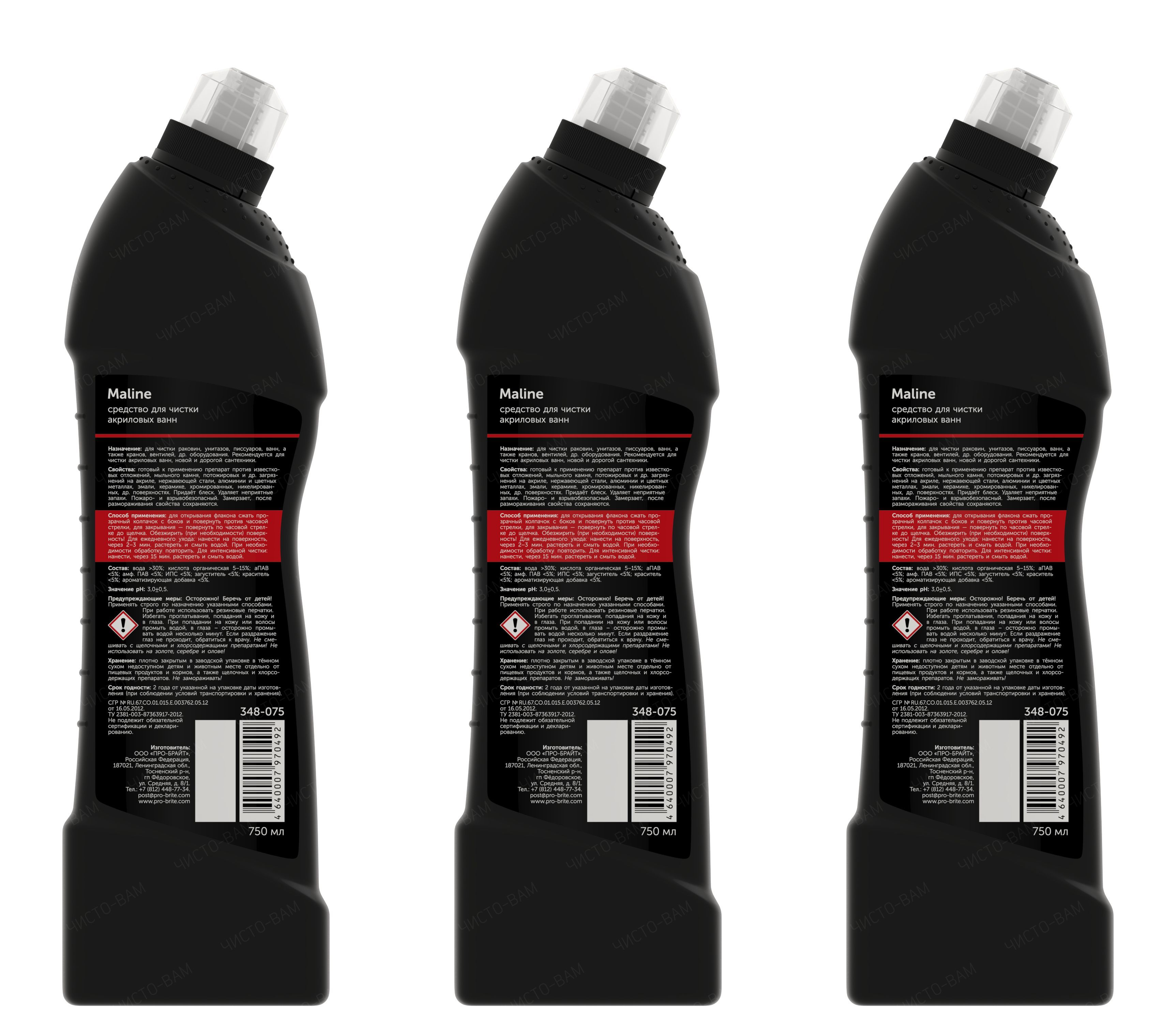 Средство для чистки акриловых ванн PRO-BRITE MALINE, 750 мл, 3 шт.