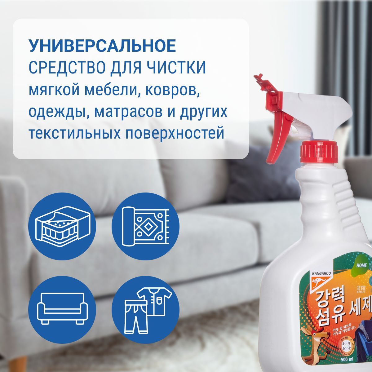 Средство для чистки ковров, пятновыводитель для текстиля 500 мл. Kangaroo Home