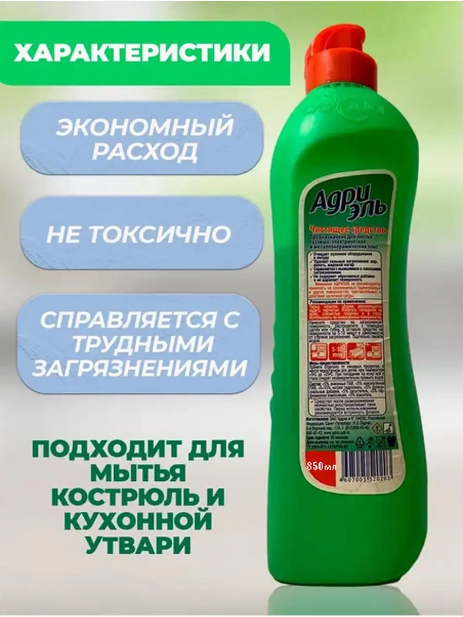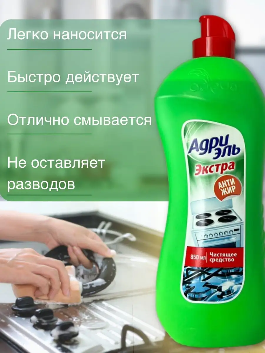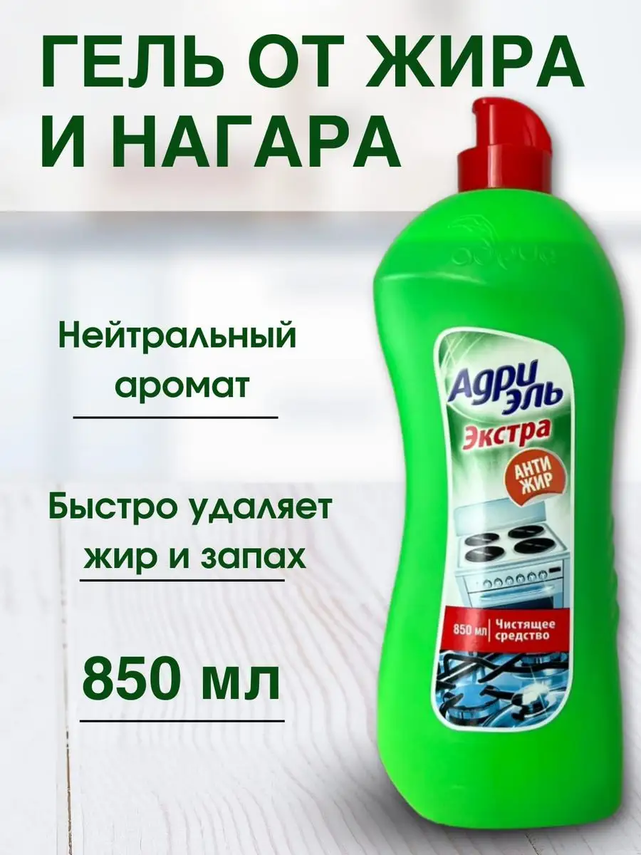 Описание: Чистящее средство АДРИЭЛЬ ЭКСТРА АНТИЖИР - для плиты, 850 мл. Гель идеально подходит для очищения газовых, электрических и металлокерамических плит, грилей и другого кухонного оборудования и посуды. Предназначен для очистки пищевого нагара и жира, образующегося на горячих поверхностях в процессе приготовления пищи.