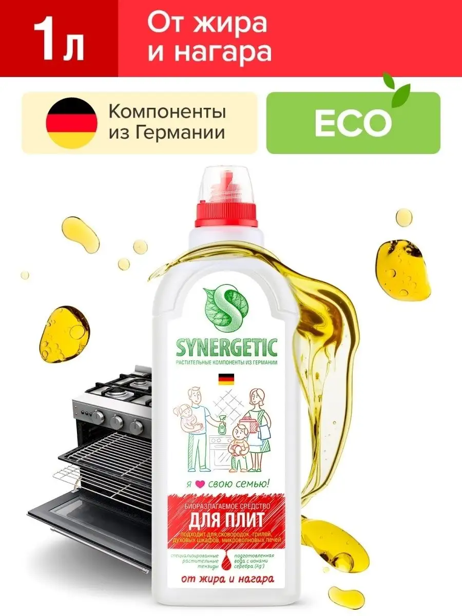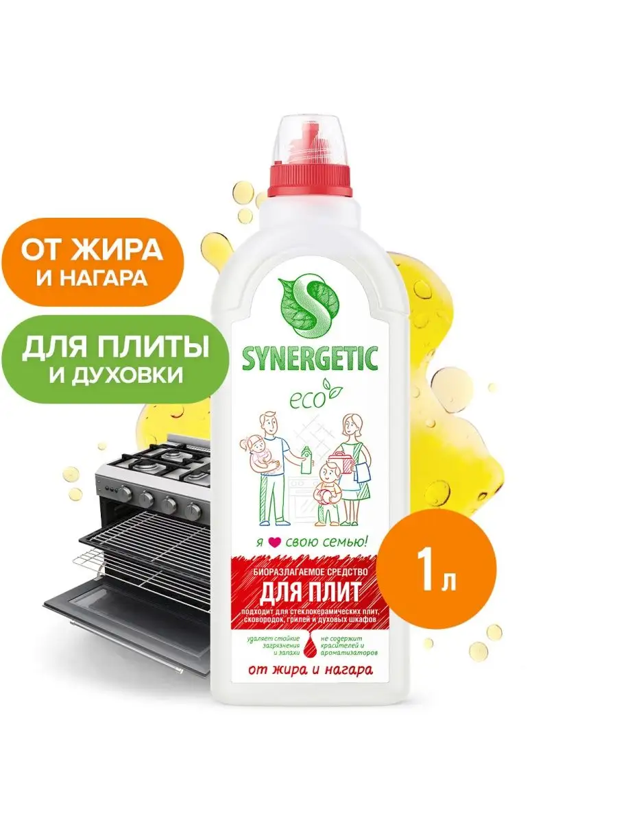 Описание: Биоразлагаемое средство для плит SYNERGETIC — высокоэффективное щелочное средство для удаления жира, нагара и копоти с плит и других кухонных поверхностей. Удобная бутылочка с носиком отлично подойдёт для точечного нанесения в труднодоступные места. Комплекс биоразлагаемых растительных тензидов и соды справляется с органическими загрязнениями за считанные минуты! Кальцинированная сода создает необходимую для расщепления пятен щелочную среду и растворяет масложировые компоненты загрязнений. ПОДХОДИТ ДЛЯ: металлических, стеклокерамических, эмалированных плит; сковородок; противней; кастрюль; шампуров; решёток-гриль; пароконвектоматов; микроволновых печей; духовых шкафов; каменных столешниц; керамической плитки. Концентрированное средство для плит безопасно для септических установок. Попадая в среду септика, оно «понятно» для микроорганизмов и без труда распадается на простые соединения. SYNERGETIC проводит внутренние испытания средств без использования лабораторных животных. Оценку токсичности мы проводим методом IN VITRO на биомассе. Наша компания разделяет позицию «Мир без жестокости» и занимается общественной деятельностью по корректировке существующих стандартов и разрешению использования этого метода для регистрации продуктов моющих средств. Флакон выполнен из полиэтилена и имеет код переработки 02. Мы рекомендуем сортировать использованную тару и участвовать в акции SYNERGETIC «ЭкоМобиль» — сдавать пустую тару и получать бонусы на покупку продукции SYNERGETIC. Состав ГОСТ: Вода подготовленная > 30%, сода 5-15%, комплекс растительных А-тензидов < 5%, комплекс растительных Н-тензидов < 5%. Состав INCI: Water, Sodium Carbonate, Sodium Lauroamphoacetate, Lauryl Glucoside, Tetrasodium Glutamate Diacetate. Активные компоненты: Комплекс биоразлагаемых растительных тензидов, кальцинированная сода. Инструкция по применению: Средство нанести на охлажденную очищаемую поверхность, при необходимости выдержать 3-5 минут, смыть водой.