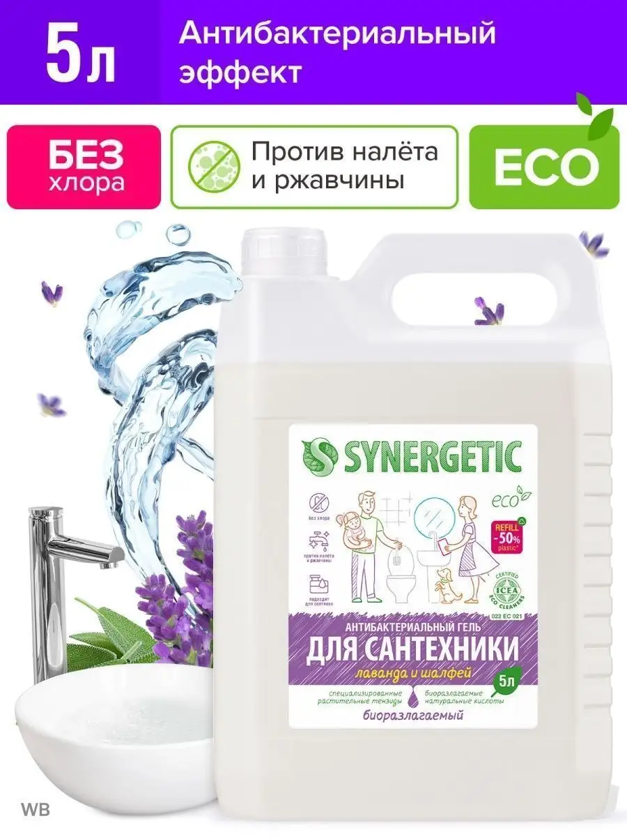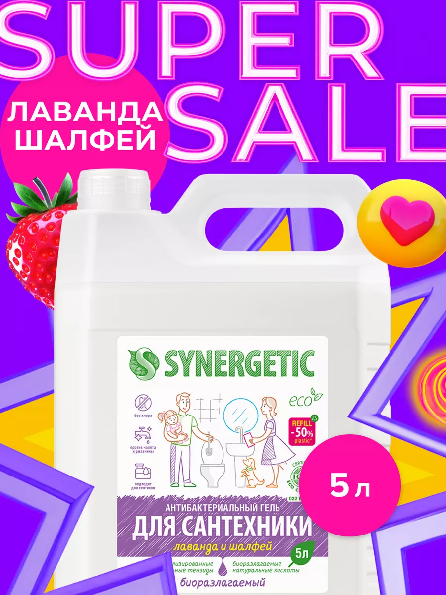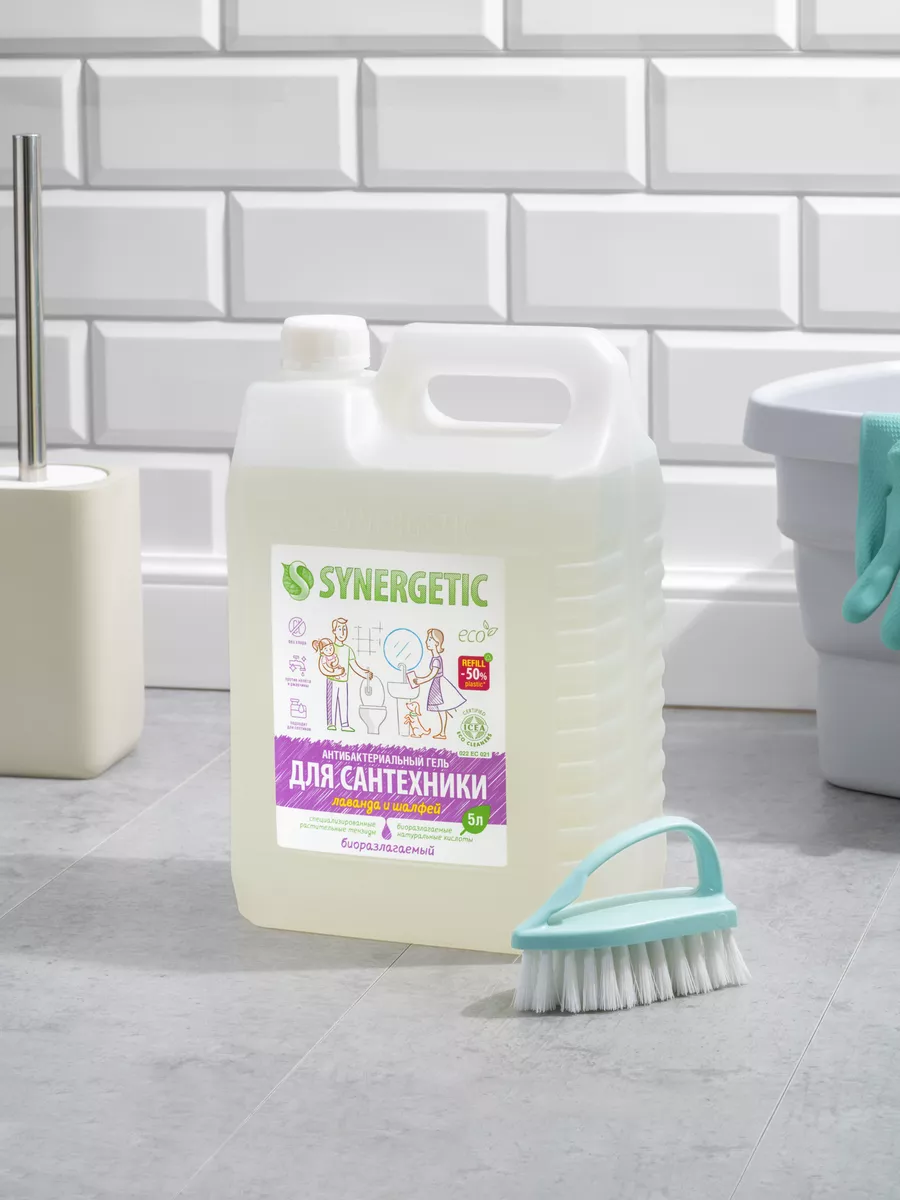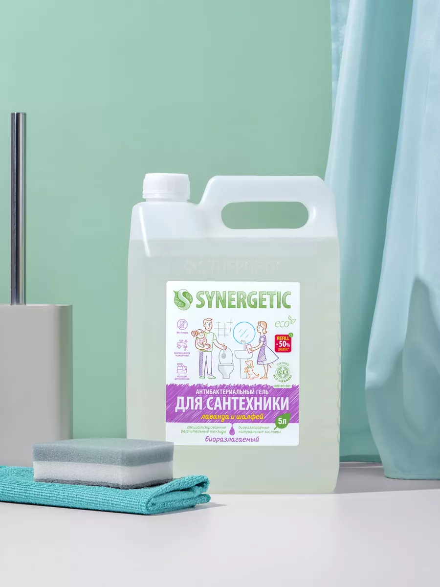 Описание: Концентрированное биоразлагаемое средство для мытья сантехники SYNERGETIC «Лаванда и шалфей» – универсальное чистящее средство для ежедневной уборки поверхностей, устойчивых к кислотным моющим средствам, в ванных комнатах и санузлах: унитаза, душевой кабины, керамической плитки, акриловых. Комплекс натуральных кислот (лимонной, гликолевой и молочной) и Н-тензидов, полученных из растительного масла, устраняет известковый налёт, ржавчину, камень и минеральные загрязнения даже в холодной и жесткой воде. Средство с антибактериальным эффектом убивает микробы и бактерии, а также эффективно устраняет неприятные запахи. Гипоаллергенная отдушка с маслами лаванды, шалфея, лавандина, бергамота и муската оставляет свежий аромат. Международный сертификат ICEA подтверждает биоразлагаемость, безопасность и эффективность средства. Гель полностью смывается водой, безопасен для септических установок. Не содержит: хлор, фосфаты, оптические отбеливатели, SLS, SLES, агрессивные кислоты и ПАВ. Инструкция по применению : Нанести на обрабатываемую поверхность, выдержать 10–15 минут, почистить, смыть водой. НЕ ИСПОЛЬЗОВАТЬ на горячих и повреждённых поверхностях; поверхностях из мрамора и цветных металлов; деревянных поверхностях. Перед применением проверить совместимость средства с обрабатываемой поверхностью на небольшом незаметном участке. Условия хранения: Хранить при температуре не выше 45 °C; средство замерзает, после размораживания и перемешивания сохраняет свои свойства. Под воздействием солнечных лучей возможно изменение цвета. *** У нас есть акции и распродажи, вы можете купить наши товары в подарок со скидкой!
