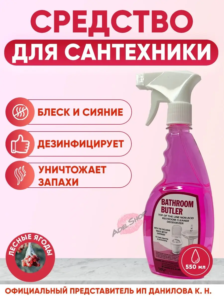 Описание: Моющее средство Bathroom Butler – это профессиональная бытовая химия для ванны, раковины, унитаза, душевой кабины и прочей сантехники. Универсальный состав подходит для мытья фаянсовых, эмалированных и керамических изделий. Чистящее средство отлично справляется с известковым налетом, ржавчиной, плесенью и трудно выводимыми пятнами. Многофункциональный состав может применяться для уборки пола из кафеля или плитки, а также для бассейна. Дезинфицирующее средство удаляет вирусы и бактерии, устраняет источник неприятного запаха, оставляет после себя свежесть и блеск обработанных поверхностей. Антибактериальный состав можно использовать не только для уборки санузла, но и на кухне. Средство прекрасно справляется с нагаром и жиром, очистит плиту, удалит застарелые пятна. С помощью очистителя удастся отмыть решетку в духовом шкафу. Жидкость антиналет для ванной и туалета – это универсальное средство в борьбе за чистоту дома. Также продукт используется для мыть общественных помещений – санузлов в спортзалах, школах и садах, больницах или гостиницах. Средство для уборки обладает приятным запахом, отлично справляется с чисткой различных сантехнических поверхностей, в том числе и металлических. Способ применения: Нанесите очищающее средство на загрязненную поверхность с помощью губки. Оставьте состав на 10 минут. Протрите обработанную площадь салфеткой. Тщательно смойте средство водой до его полного удаления.