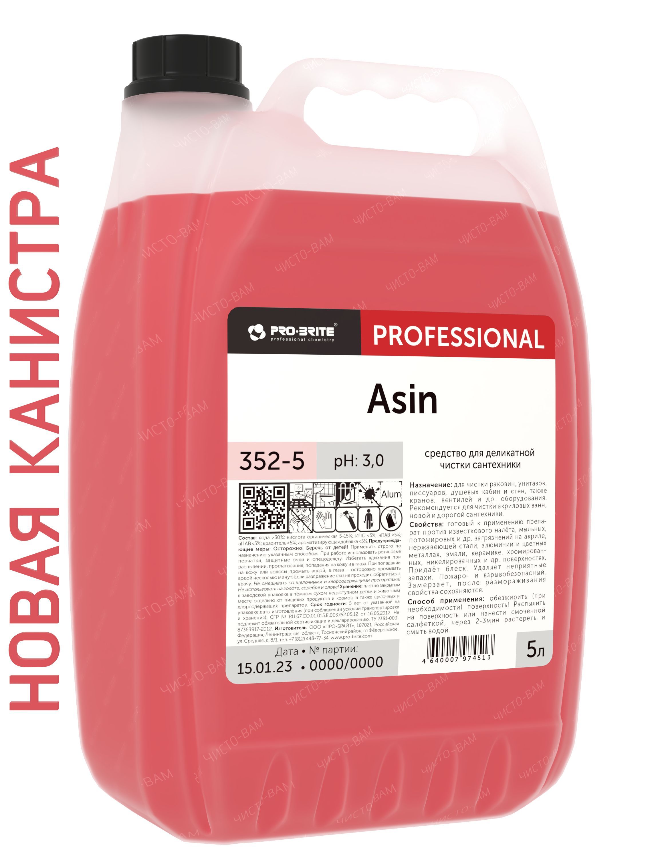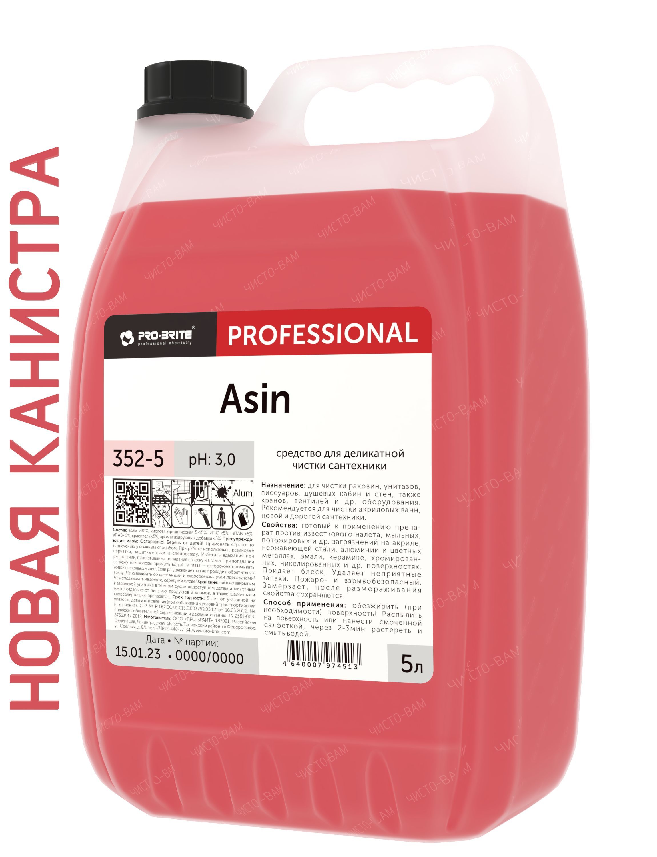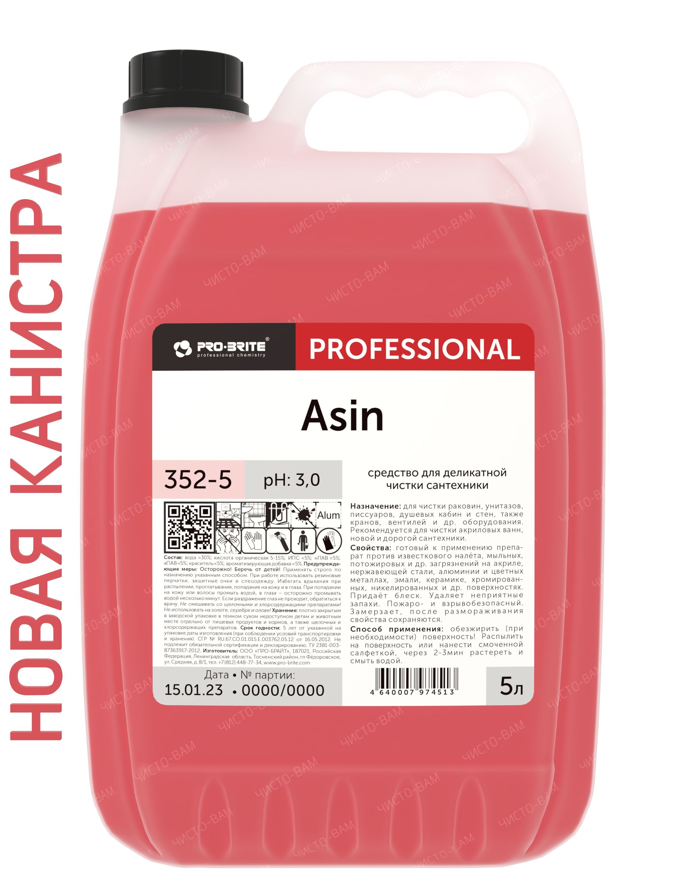 Средство для деликатной чистки сантехники Pro-brite ASIN, 5л