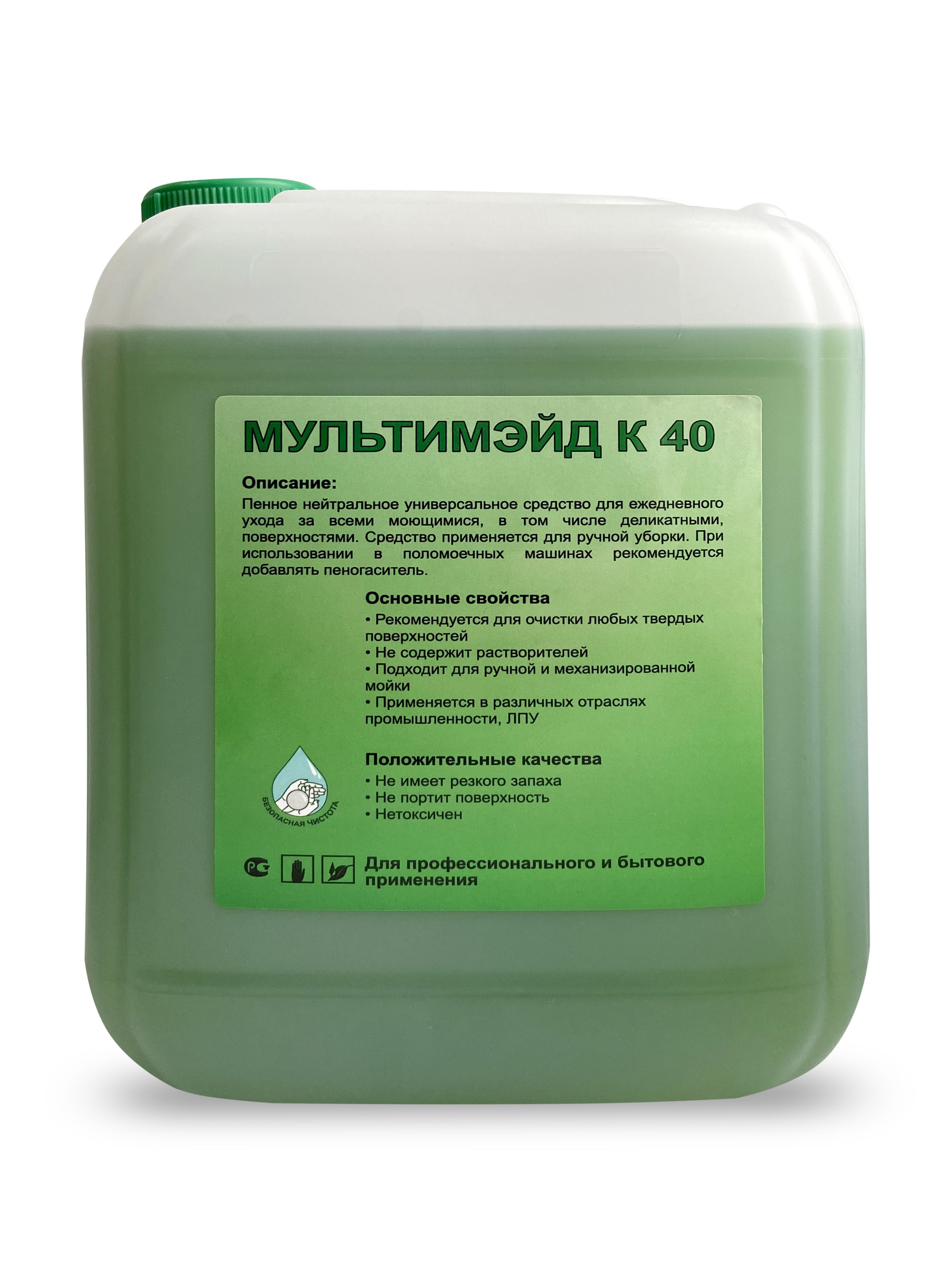 Описание: Мультимэйд К 40Концентрированное средство для комплексной уборки помещений, мытья и обезжиривания виниловых фасадов (сайдинга), линолеума, пластиковых стеновых и потолочных панелей.