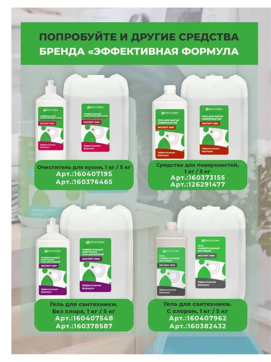 Описание: Средство для мытья полов «Эффективная формула» чистящее средств для уборки в доме. Моющее средство эффективно удаляет загрязнения с любых напольных покрытий: линолеума и ламината. Средство для мытья пола идеален для керамической плитки и мрамора, настоящего паркета, кафеля, керамогранита. Универсальное моющее средство для пола от пыли экономично расходуется. Жидкости для мытья пола хватает на более 500 уборок. Гель для пола подходит для ежедневной влажной уборки. Концентрат не требует смывания, не оставляет плёнок и разводов. Моющая жидкость для пола снимает статическое электричество не оставляя "липкого" эффекта. Жидкость для мытья полов «эффективная формула» удаляет до 100% грязи от домашних питомцев, засохшие остатки пищи вокруг миски, мусор или брызги около лотка. Безопасно для семьи и домашних питомцев. Житкость подходит для мытья стен, очистки пластика, удаления пыли во всех комнатах в доме (детской, спальне, кухне, ванной, гостиной). Чистящее средство для полов безопасно для септиков. Соедство антипыль идеально для ухода за полами из дерева и любых других материалов. Эко средство без хлора, фосфатов и фосфонатов. Универсальное моющее средство - Эффективная формула - разработано для мытья любых влагоустойчивых поверхностей - полов, стен, внешних поверхностей бытовых электроприборов, различных поверхностей из кафеля, пластика, дерева (включая лакированное и окрашенное), линолеума, для мытья посуды, пищевого оборудования, разделочных столов. Средства для уборки в неразбавленном виде подходят для мытья ванн, раковин, унитазов и подобных поверхностей. Средство для мытья полов обладает отличным обезжиривающим и моющим действием. Не требует смывания и не оставляет разводов при высыхании поверхности. Удаляет масло-жировые загрязнения, грязь, пыль, сажу. Обладает нейтральным ароматом. Низкий расход моющего средства обеспечивается за счет концентрированного состава. Без красителей и отдушек. Не раздражает кожу рук. Подходит для применения в доме с детьми и животными. Жидкость имеет эко-состав и безопасна для септиков в частном доме. Отличное моет в холодной воде. СОСТАВ: натуральные А-тензиды на основе кокосового масла менее 5%, НПАВ менее 5%, загуститель – соль поваренная пищевая, вода питьевая артезианская. Упаковка - пластиковая канистра 5 кг. Сделано в России. СПОСОБ ПРИМЕНЕНИЯ: развести в емкости в концентрации от 5 до 10 мл на 1 л воды, промыть обычным способом. Для сильно загрязненных поверхностей нанести и протереть с помощью тряпочки или губки для мытья посуды. Добавляйте бренд "Эффективная формула" в избранное и следите за нашими новинками и акциями. Мы являемся производителем и все наши средства проходят лабораторные испытания перед отправкой покупателю У нас вы сможете найти весь ассортимент моющих средств.