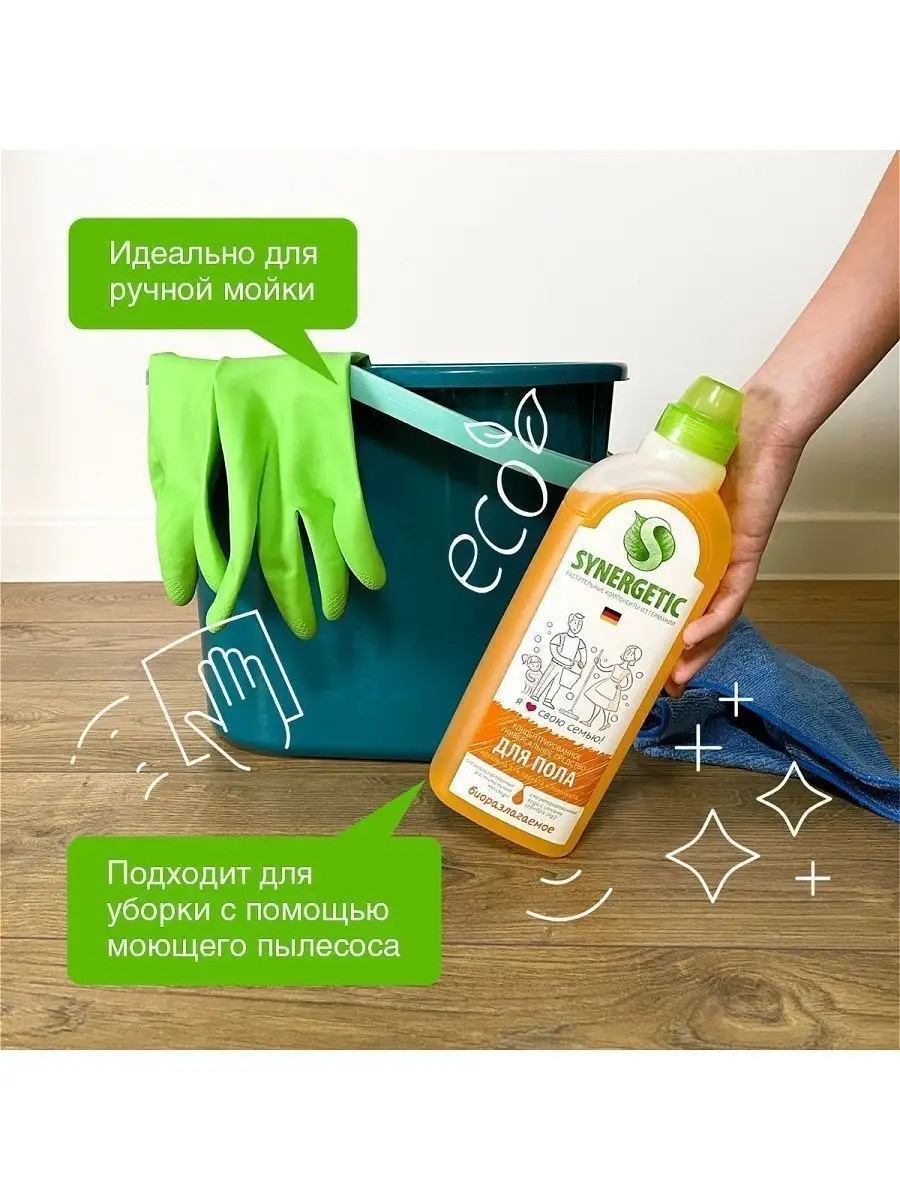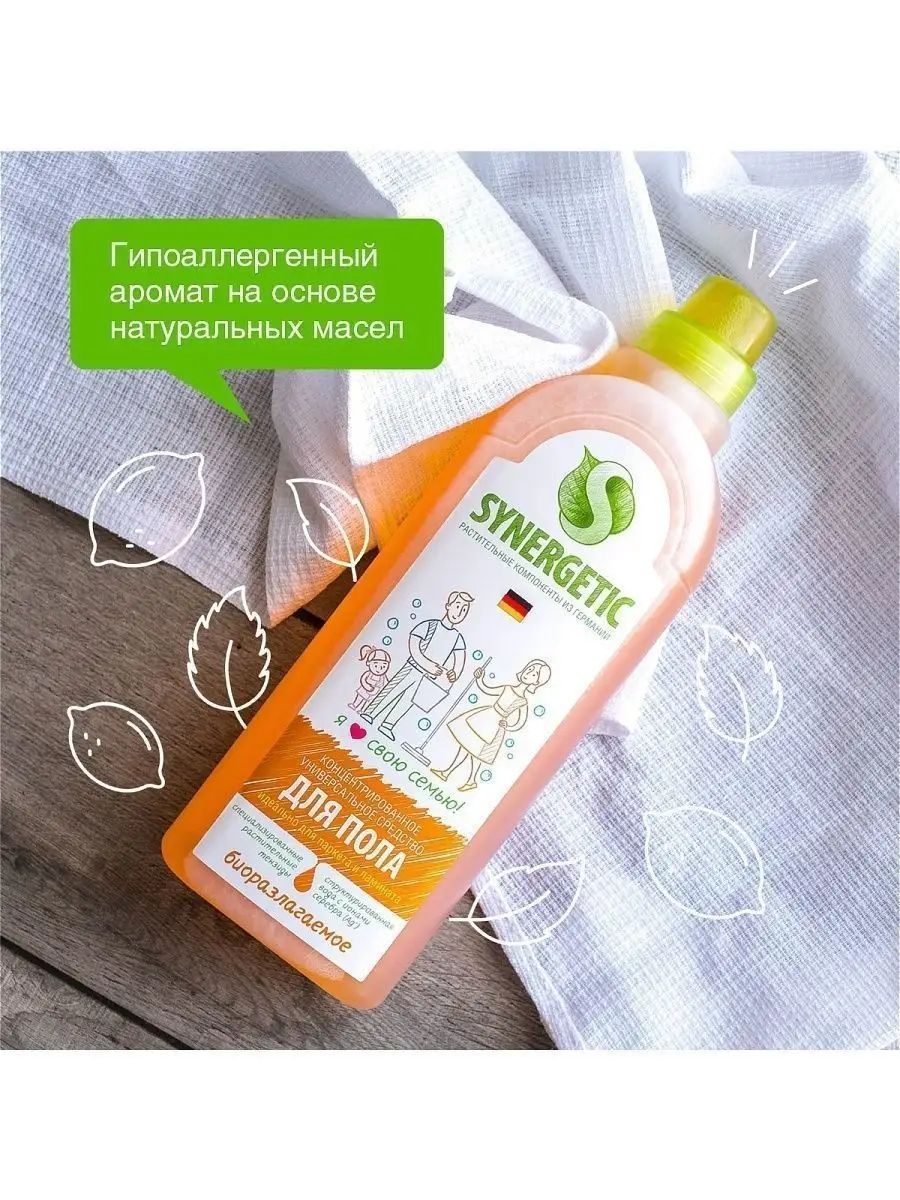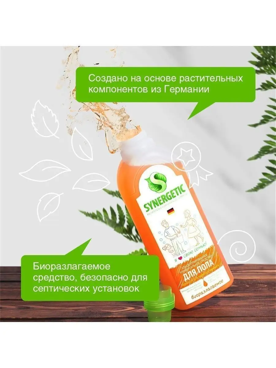 Описание: Биоразлагаемое концентрированное средство для мытья поверхностей SYNERGETIC – универсальное средство для ежедневной и генеральной уборки пола и других поверхностей: столов, стен, потолка. Уникальный комплекс растительных тензидов эффективно удаляет загрязнения и неприятные запахи даже в холодной воде. Комплекс зеленых хелатов предотвращает повторное оседание загрязнений на поверхности. Подходит для паркета, ламината, плитки, линолеума, металла, стекла, пластика, дерева. Международный экологический сертификат ICEA подтверждает биоразлагаемость, безопасность и эффективность средства. Не требует смывания, не оставляет разводов на поверхности. Подходит для уборки в детских комнатах и учреждениях. Безопасно для домов с питомцами. Содержит гипоаллергенную отдушку с натуральными эфирными маслами сантала, бергамота, мяты и лимона. *** Наше Средство для пола универсальное антибактериальное, 1л бренда SYNERGETIC - это идеальное решение для тех, кто хочет иметь максимально чистый и гигиеничный дом. Мы понимаем, что чистота на полу является очень важным аспектом здорового образа жизни, поэтому мы разработали уникальную формулу, которая обеспечивает максимально эффективную чистку, при этом защищая поверхности от распространения бактерий. Наше Средство для пола универсальное антибактериальное содержит только натуральные ингредиенты, которые позволяют бережно и качественно очистить любые поверхности от загрязнений. Оно легко удаляет пятна, грязь и следы обуви, не оставляя при этом разводов и не повреждая поверхности. Более того, благодаря антибактериальному эффекту, наше средство защищает поверхности от распространения бактерий и гарантирует максимальную гигиену в вашем доме. Кроме того, наше Средство для пола универсальное антибактериальное имеет приятный аромат и легкую текстуру, которая приятно распределяется по поверхности. Его удобный объем в 1 литр позволяет использовать его долго и экономично.
